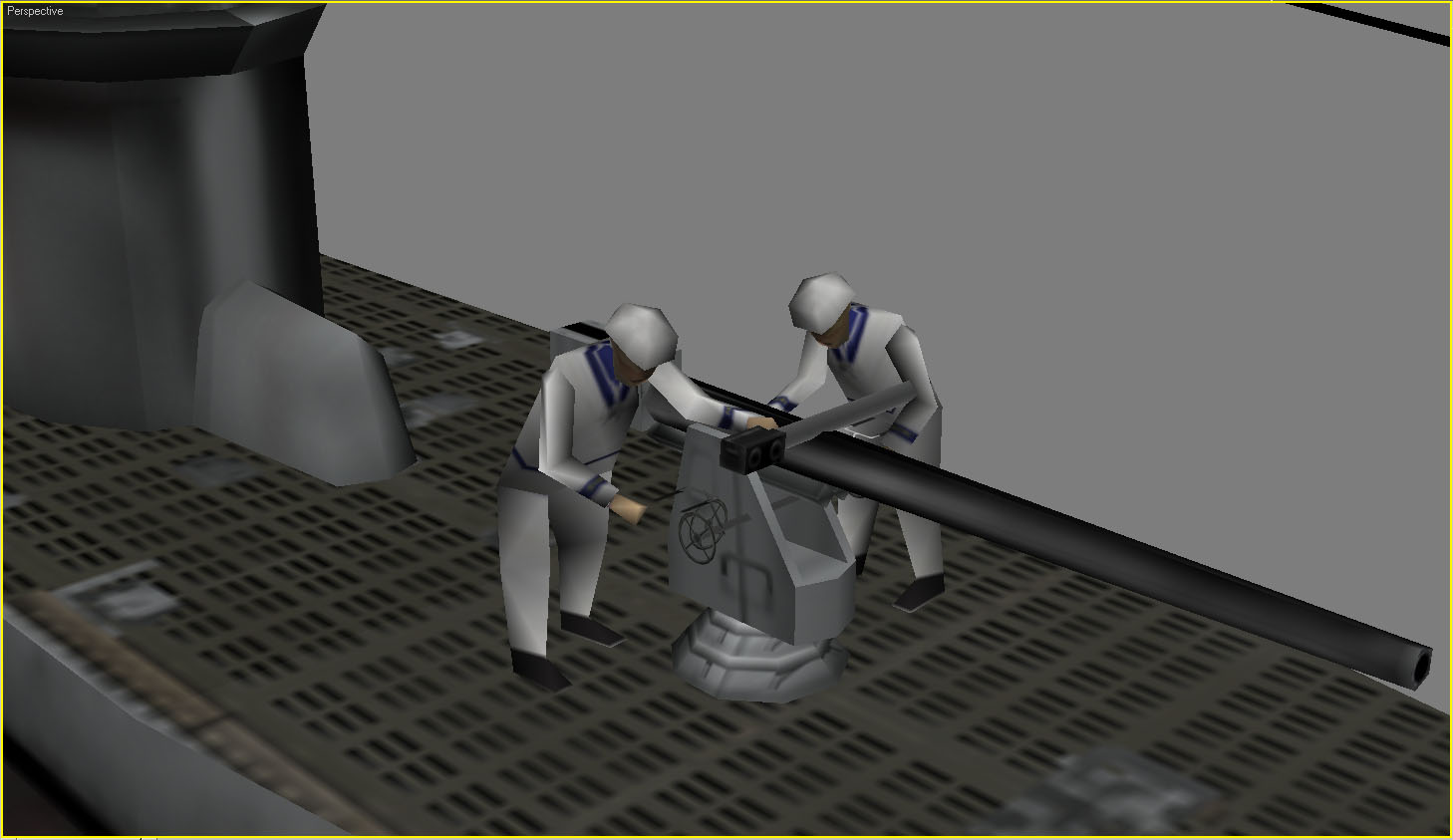 Что-то типа этого. Двоих интересно хватит, или еще одного на подаче со снарядом прикрутить? Я сделал их отдельным отдельно от орудия, назвал пока Crewmen_D0 и т.д. Можно даже на рубку для разнообразия приделать.