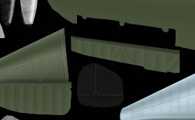 Что рисуем первым делом? Нет, не расшивку, сначала, согласно маппингу рисуем контуры. Так потом проще будет рисовать всё остальное (рис 1). Так же для облегчения своей работы можем «украсть» с другого скина те элементы, которые вы не собираетесь менять. Обычно это внутренние створки шасси, содержимое кабины, приборные доски и т.п. (рис 2)