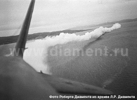 На фото:самолет-дымзавесчик ставит дымовую завесу вдоль каравана. 1943 г.