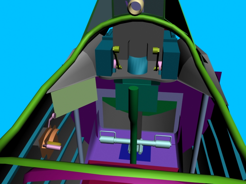 Кокпит в работе. Там, кстати есть интересная деталь с отсечением. Дело в том, что из кабины видно кусочек фюзеляжа довольно близко. Надобно сделать так, как сделали в паке мессеров - т.е я сделаю кокпит из внешней модели отдельной деталью, чтобы при виде из кабины отрезался он, а сам фюзеляж не трогали - кокпит туда войдет.