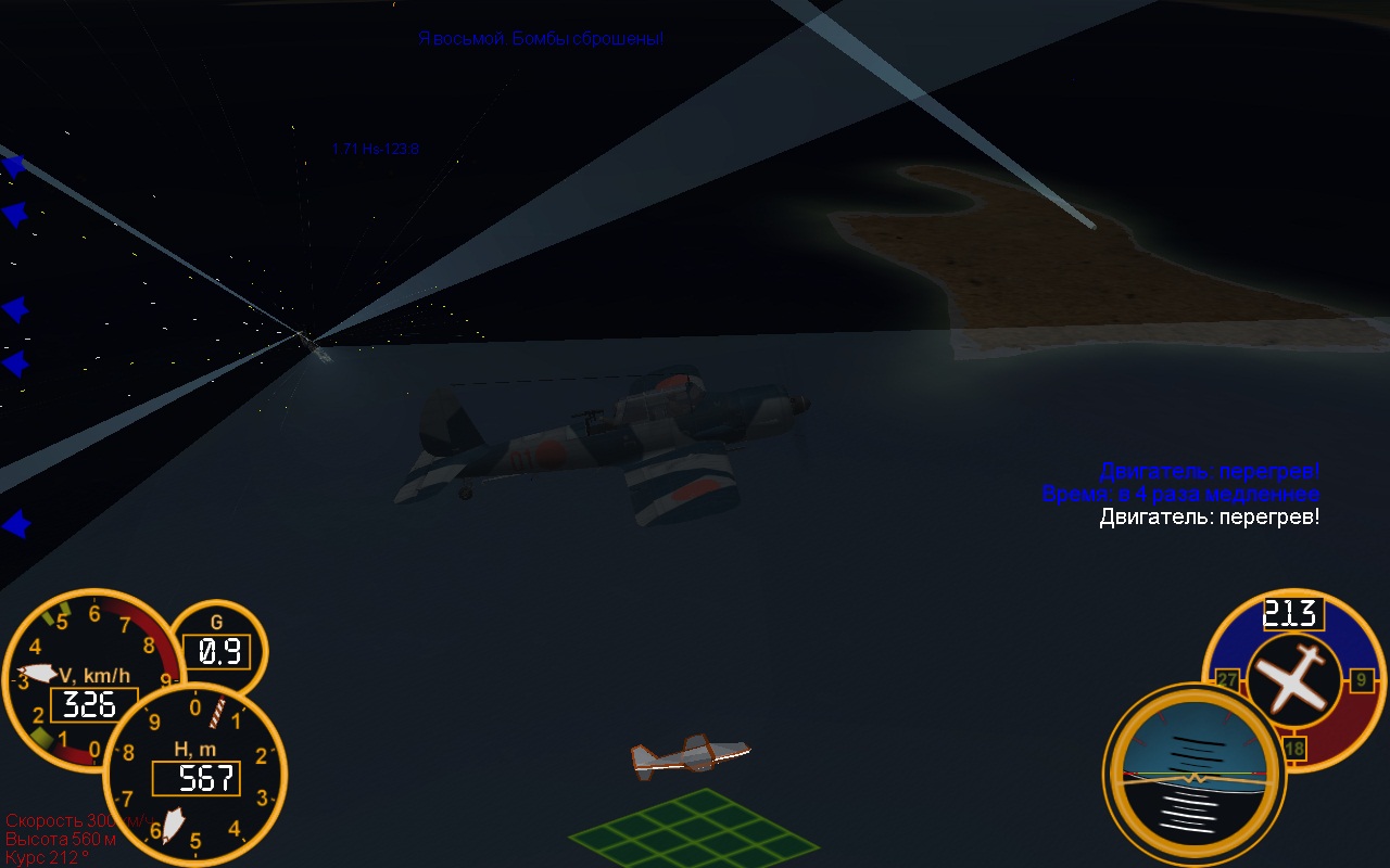 Для сравнения на некоторых скринах, на острове, виден сухопутный прожектор ПВО.