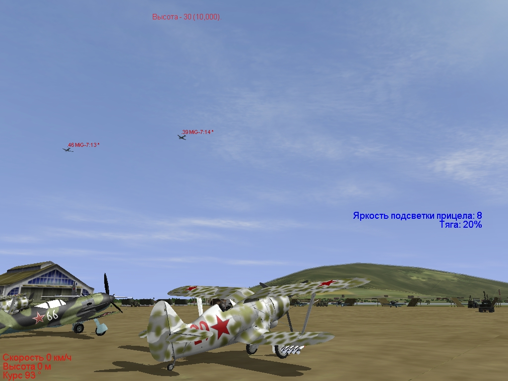 Миссия 17. Текст брифинга: 1 мая 62510 г. до Н.Э. 10час 00мин. Аэродром «ПОБЕДА-3». Несмотря на наступившие первомайские праздники, интенсивная учебно-боевая подготовка на УТК «ПОБЕДА» продолжалась – времени до начала ВОВ в СССР-41 оставалось совсем немного. Накануне генерал Захаров самостоятельно вылетел на новом пушечном истребителе-биплане И-190. Этот высокоманевренный боевой самолет был многоцелевым и в воздушной армии Захарова он будет, в ограниченном количестве, использоваться и как истребитель и как легкий штурмовик. В прошлой истории в первые месяцы войны советские войска подверглись массированным и очень эффективным бомбовым ударам немецких пикирующих бомбардировщиков Ju-87. Самолет этот, хоть и был тихоходным, но имел мощное бомбовое и стрелковое вооружение, был достаточно маневренным, а его пикирующие возможности обеспечивали высокую точность бомбометания (он был как бы прообразом современного высокоточного оружия). В состав экипажа этого самолета входил и воздушный стрелок, обеспечивающий оборону задней полусферы самолета. Очень досаждали нашим войскам и тихоходные, но высокоманевренные тактические немецкие самолеты-разведчики FW-189, прозванные нашими солдатами «Рамой». Сбить Раму, что зенитной артиллерией, что истребителями, было далеко не просто - этот самолет так же имел воздушного стрелка, защищавшего ЗПС, да и в состав его экипажа, как правило, входили очень опытные летчики. Наши солдаты часто говорили «увидел раму – жди бомбардировщиков». Вот против таких тихоходных, но маневренных воздушных целей, а так же слабо бронированных наземных и надводных целей и был предназначен многоцелевой истребитель И-190. На сегодняшний день генералу Захарову был запланирован не совсем обычный учебно-боевой полет на многоцелевом истребителе И-190. Задача: 1. Выполнить взлет и набор высоты 1300 м. Выйти в квадрат С/2, обнаружить и уничтожить пушечным огнем две воздушные мишени – немецкие пикирующие бомбардировщики Ju-87D7. Они парой выполняют полет по заданному маршруту. 2. После поражения пары Ju-87 набрать высоту 2000 м и выйти в квадрат D/5. Обнаружить и уничтожить пушечным огнем одиночную воздушную мишень – немецкий тактический разведчик FW-189. Все воздушные мишени не имеют бортового вооружения и управляются экипажем самолета ТУ-126 – его эшелон полета 1500 - 5000 м. 3. После поражения FW-189 выйти на наземный полигон УТК «ПОБЕДА», расположенный в квадрате В/4. Снизиться до высоты 500 метров, сделать несколько кругов над полигоном, выбрать наземную цель и поразить ее неуправляемыми ракетами и пушечным огнем. Посадку произвести на аэродром «ПОБЕДА-3» и зарулить на его южную стоянку. Весь маршрут полета указан в полетной карте, погода на маршруте – ПМУ. Будьте внимательны – в районе аэродрома «ПОБЕДА-3» идут интенсивные плановые полеты. Вариант вооружения вашего самолета: 8хRs82. Скин вашего самолета: стандарт. ОЗ должны быть выключены. |