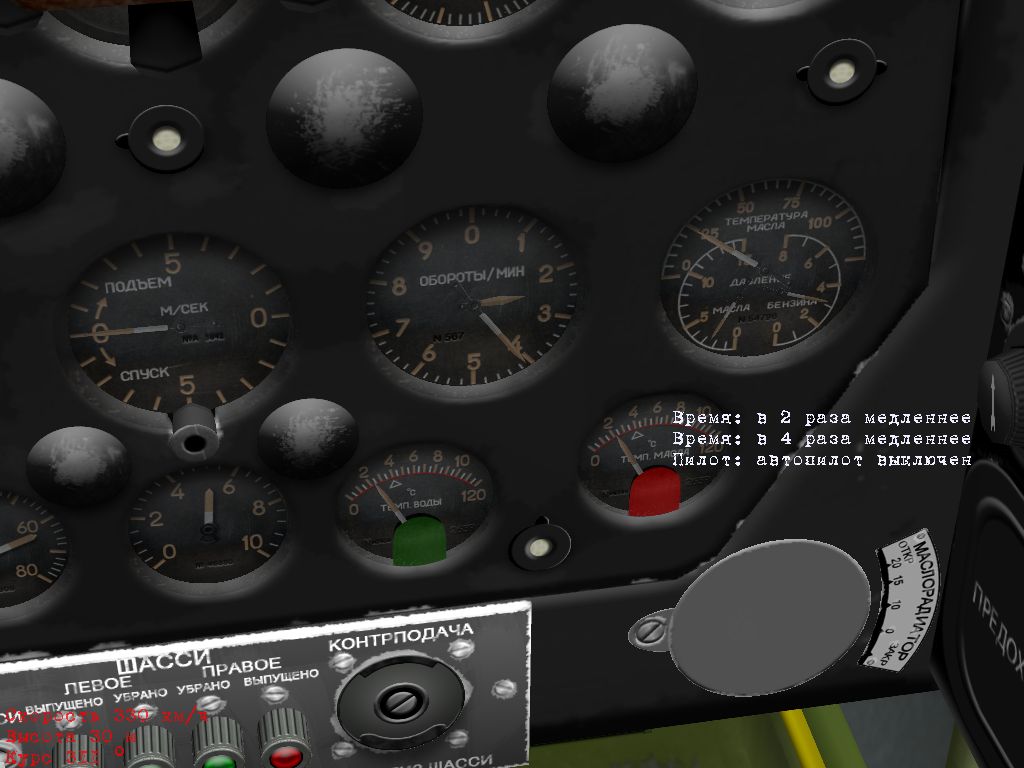 Так же, при удаленном обзоре, винт, диаметр нимба нормальный, при приближении уменьшается, что не соответствует физики оптического восприятия, прицел затуманен каким то колечком фоновым, нет ручки газа. Отсутствует подсветка приборов.