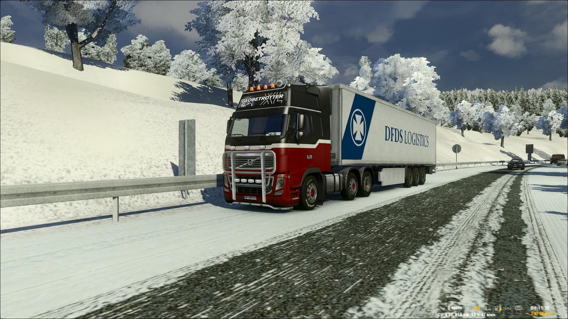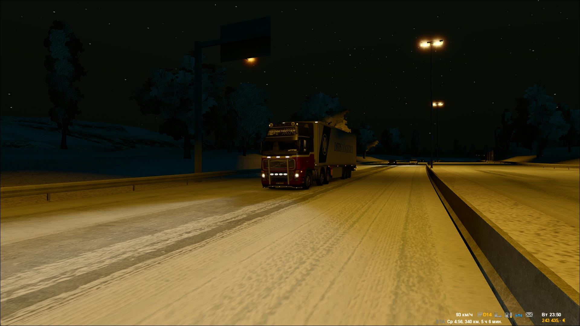 Не на самом деле конечно, и не во сне, а в симуляторе Euro Truck Simulator 2. Довольно неплохая игрушка, особенно с модами. Под новый год, поставил себе зимний мод до кучи.
