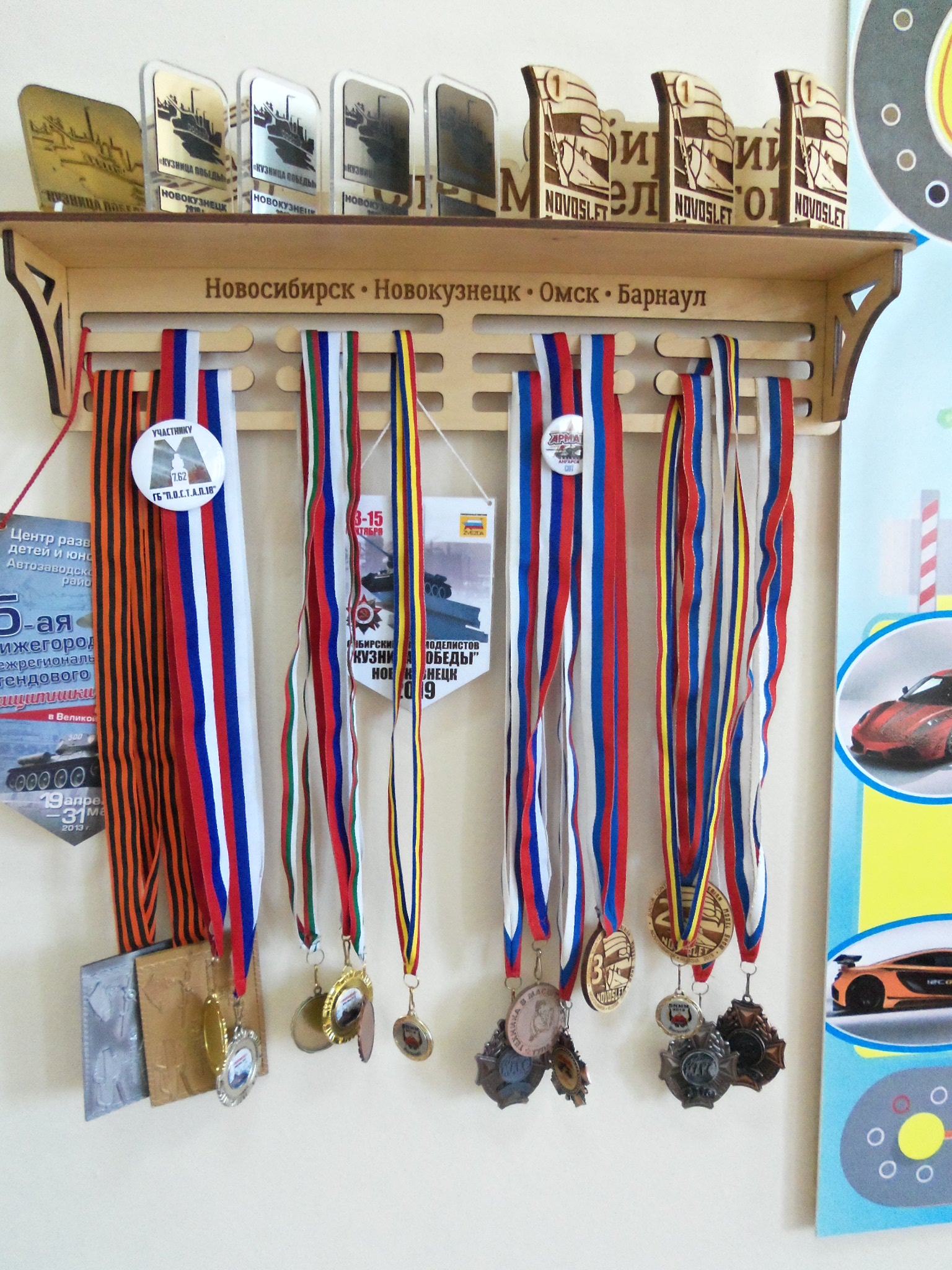 Это Сергей со своими трофеями. Все же у него вышло замечательное завершение учебы, столько призовых мест. Молодец!