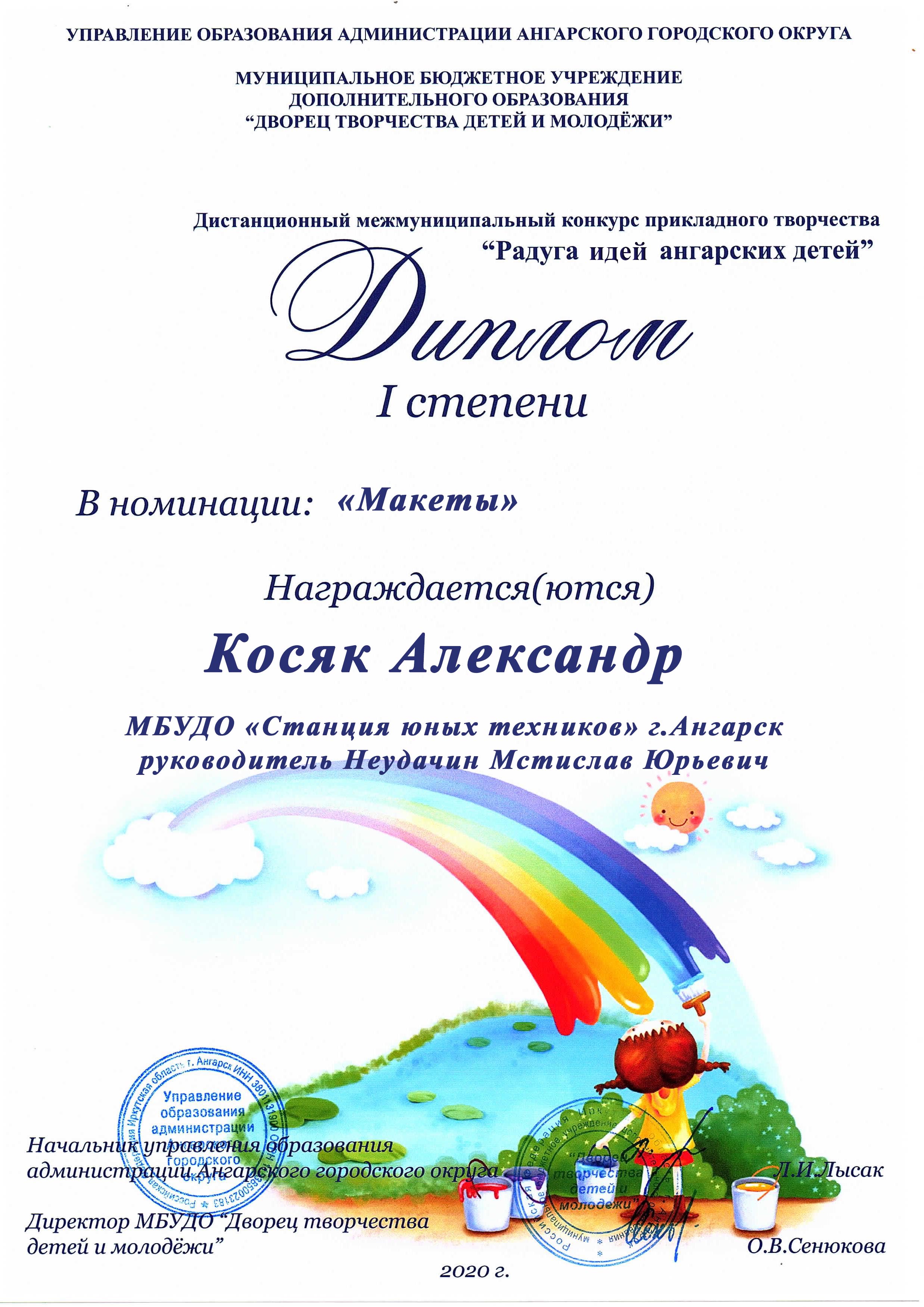 С большим опозданием, но все же сегодня пришли наши дипломы за участие в дистанционного межмуниципального конкурса прикладного творчества «Радуга идей ангарских детей».