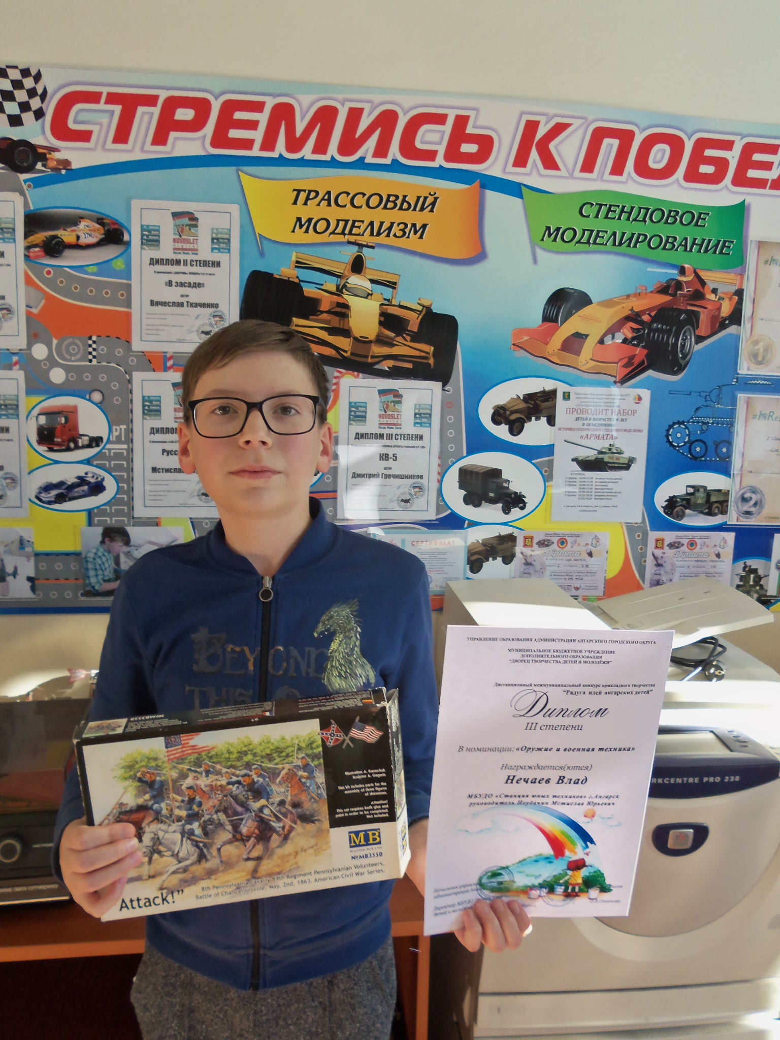 Сегодня вручил призы и дипломы еще двум учащимся. Вячеслав стал призером даже двух выставок.