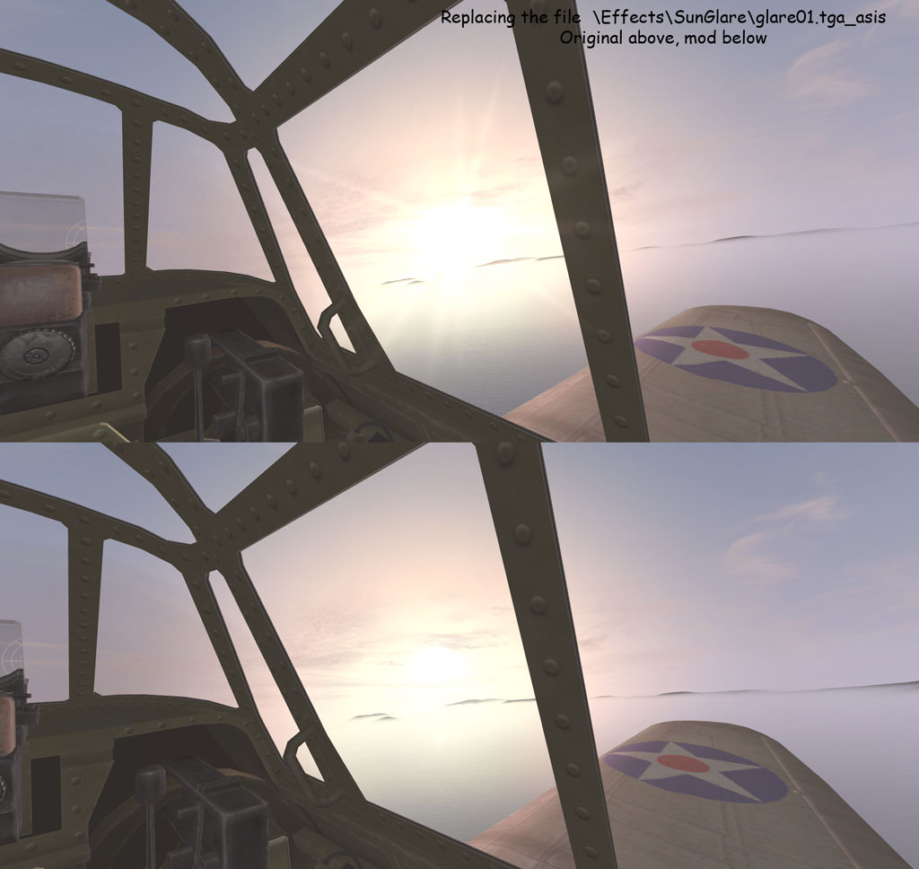 Автор(ы) мода: WxTech. Категория мода: эффекты. Ссылка на скачивание: Мод солнца (Sun Glare Mod): https://www.mediafire.com/?cv281msklzvhmn4 Мод облаков (Big Clouds Mod): http://www.mediafire.com/download/7a..._big_clouds.7z Мод кругов нв воде (Water Ring Speed Mod): https://www.mediafire.com/?0xxalcacrxc4x8o Скачать одним архивом: ftp://195.177.105.58/MODs/4.09/Visua...s_SunGlare.rar Ссылка на обсуждение: http://www.sas1946.com/main/index.php?topic=40413.0 Краткое описание что мод делает: изменяет вид солнца, облаков и кругов на воде. Краткая инструкция по установке: в архиве.