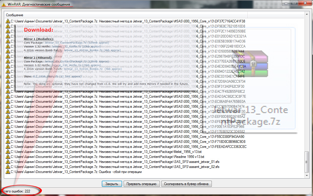 Поскажите пожалуста, чем бы я не качал IL2 1956 - The Jet Era v1.32 она всегда скачивается с САСа с повреждённым архивом, это у всех так ??? Мне пишет архиватор при распаковке повреждены 222 файла, это как такое может быть ?