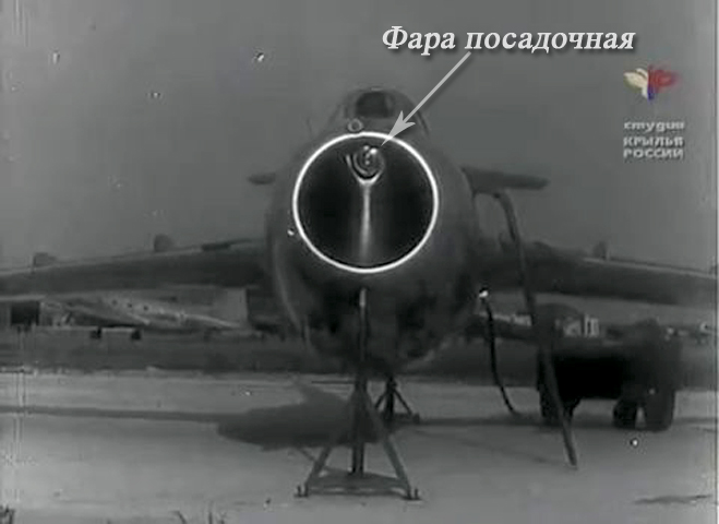 Вы то сами глядели этот учебный фильм ? Вот на скриншоте показываю где должна быть посадочная фара у МиГ-15...