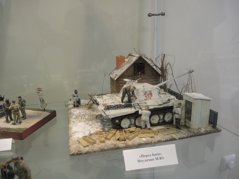 авиации было к сожалению очень мало, много брони и виньеток. несколько авторов отказались от участия и поэтому пришлось заполнять ветрины на скорую руку, отсюда и некоторый сумбур. детские работы тоже разные по качеству, для большенства это первая выставка.