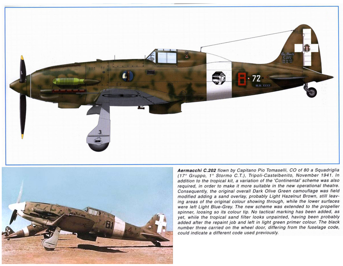 Folgore ("Молния").Серии M.C.202 обозначались римскими цифрами от I до XI. Основное отличие этой модели-другой тип радиостанции и мачты,а также установка нового противопылевого фильтра для эксплуатации в пустыне.Последнюю модификацию фильтра быстро внедрили на производственной линии и самой заметной ее деталью был характерный цилиндрический обтекатель воздухозаборника турбокомпрессора.Обычно самолеты,модифицированные для войны в пустыне,получали к обозначению суффикс AS (Africa Settentrionale - североафриканский).Последующие модификации MC.202 шли уже с новыми противопылевыми фильтрами! http://www.mediafire.com/download/ui....202IIILate.7z Проверен в 4.12.2 SAS ModAct 5.30...на других-не возможно то-же! ![]() P.S.Особая благодарность Vasya от большого колличества любителей Ил-2 за реализацию задуманного.