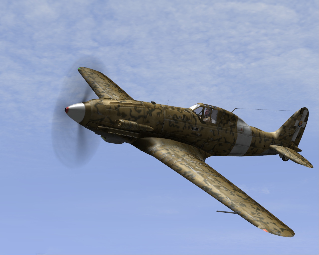 Folgore ("Молния").Серии M.C.202 обозначались римскими цифрами от I до XI. Основное отличие этой модели-другой тип радиостанции и мачты,а также установка нового противопылевого фильтра для эксплуатации в пустыне.Последнюю модификацию фильтра быстро внедрили на производственной линии и самой заметной ее деталью был характерный цилиндрический обтекатель воздухозаборника турбокомпрессора.Обычно самолеты,модифицированные для войны в пустыне,получали к обозначению суффикс AS (Africa Settentrionale - североафриканский).Последующие модификации MC.202 шли уже с новыми противопылевыми фильтрами! http://www.mediafire.com/download/ui....202IIILate.7z Проверен в 4.12.2 SAS ModAct 5.30...на других-не возможно то-же! ![]() P.S.Особая благодарность Vasya от большого колличества любителей Ил-2 за реализацию задуманного.