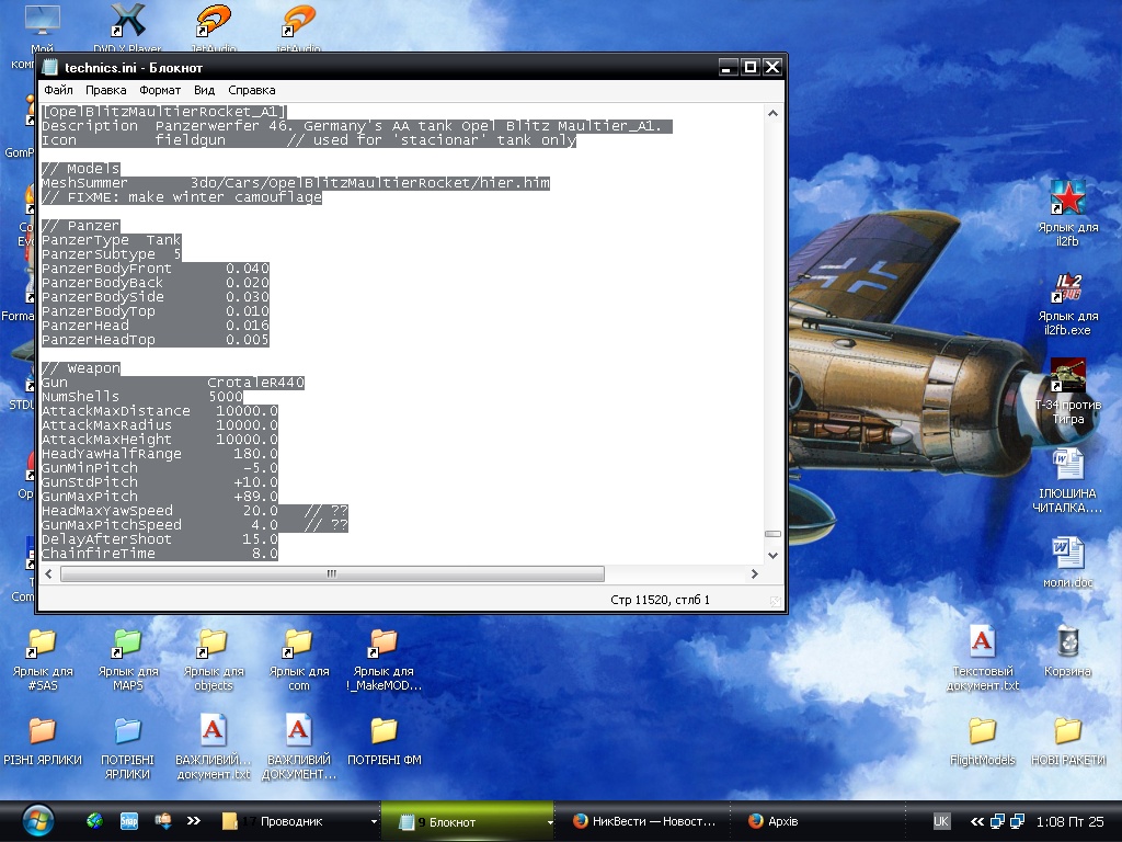 Подскажите, хто грамотный, пожалуйста что вписать или где почитать про такое дело? Часть записи в техникс-ини: // Panzer PanzerType Tank PanzerSubtype 3 PanzerBodyFront 0.040 PanzerBodyBack 0.020 PanzerBodySide 0.030 PanzerBodyTop 0.010 PanzerHead 0.016 PanzerHeadTop 0.005 // Weapon Gun CannonRocketSimpleRA1A NumShells 5000 AttackMaxDistance 10000.0 AttackMaxRadius 10000.0 AttackMaxHeight 10000.0 HeadYawHalfRange 180.0 GunMinPitch -5.0 GunStdPitch 0.0 GunMaxPitch +89.0 HeadMaxYawSpeed 10.0 // ?? GunMaxPitchSpeed 3.0 // ?? DelayAfterShoot 5.0 ChainfireTime 9.0 FireFastTargets 1 FastTargetsAngleError 20.0 // Moving SoundMove models.Tank StayWhenFire 1 SpeedAverage 19.0 SpeedMax 26.0 SpeedBack 5.0 RotSpeedMax 60.0 // ?? RotInvisAng 70.0 BestSpace 13.0 AfterCollisionDist 6.1 CommandInterval 1.6 StayInterval 1.5 В классе Артилерия прописано правильно: implements TgtTank, TgtFlak, STank Сама ракета почти копия RocketSimpleRS150 с увеличенной дальностью стрельбы до 20 километров. Первый раз делаю зенитный танк - поэтому нужен совет. ======================================= Эх! И никто не знает., я уже понял - начебто - дело в вооружении - нужен правильный тип ракет. ![]() Есть отдельно классы пушек мелкокалиберных флаков, есть отдельные больших зениток., есть отдельные классы для ракет самолётных и ракет наземных, типа катюш., нужно создать отдельный класс ракет и вписать им возможность стрелять по воздушным целям - подобно как вписано в класс MGunAntiAirGeneric. Пытался сделать класс RocketAntiAirGeneric. но пока безрезультатно - знаний не хватает. Может Игорь и Дмитрий помогут чем? ![]() Хотелось бы... Можно было б создать интернсный мод - так думаю. Последний раз редактировалось Vasya; 21.07.2014 в 23:53. |