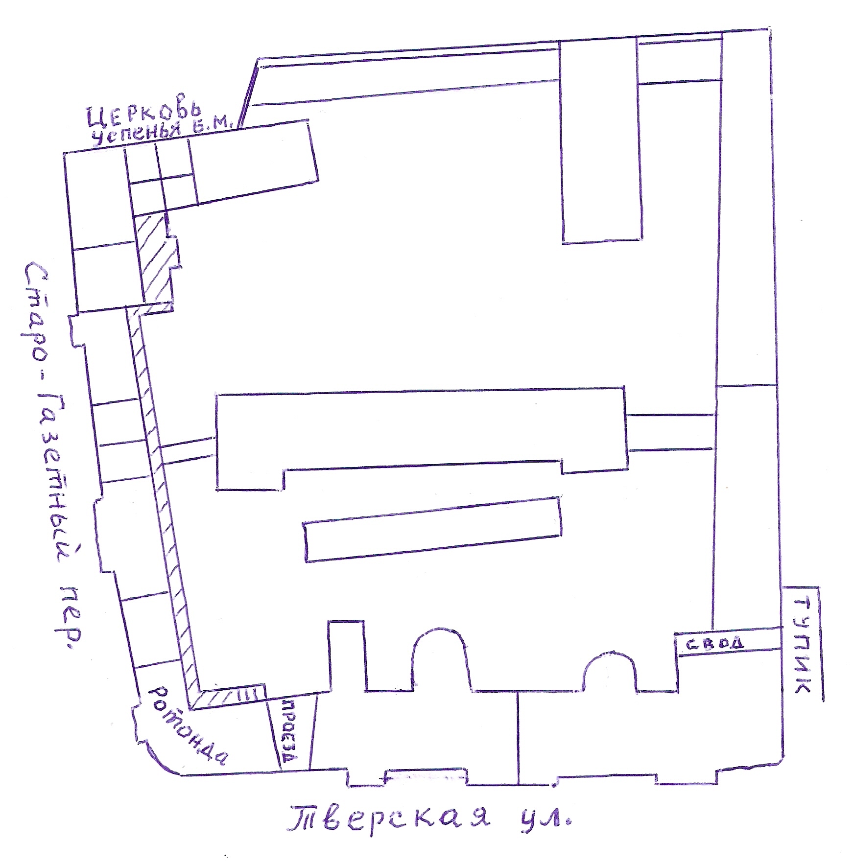 Какого года план? Тьфу, это церковь справа, не понял, институт-то дальше точно после революции построили. Исправил, чем было.