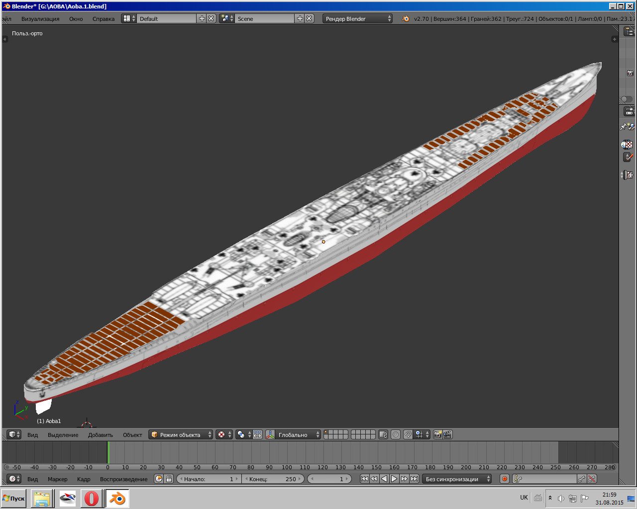 Ил универсальная игра, хочешь на самолетах летай, хочешь на машине катайся, хочешь в морской бой играй. Последний подвид игры в последнее время очень сильно меня увлёк... И тут пришло понимание, что в игре крайне мало крейсеров, а ведь это один из самых интенсивно используемых классов кораблей. Лично меня, особенно угнетает отсутствие в игре тяжелых японских крейсеров так необходимых для тихоокеанских кампаний. Решил попробовать себя в модостроительстве. Поскольку в 3D моделировании я полный чайник, работать буду в Блендере. Программа бесплатная, а интерфейс понятен на интуитивном уровне. Решил строить крейсера тип Аоба. Набрал чертежей, скачал двухтомник Японские тяжёлые крейсера. -С.В. Сулига и принялся за работу. В результате титанических потуг, догрыз корпус... Художник из меня получился ещё хуже. Поэтому не долго думая наложил на развёртку куски чертежа и криво-косо, частично, размалевал в Паинте, получилось вот что. И тут на этапе строительства носовой надстройки, я понял, закончить работу не смогу... Слишком кривые руки, мало опыта, сложная форма надстройки, умноженная на неточные чертежи. В утешение себе любимому и чтобы проверить правильность решений импортировал модельку в виде стационарного объекта в ил. Оценил ошибки, прикинул планы и возможности. И решил сваять что либо попроще. Например крейсера тип Светлана- Красный Крым, Червона Украина, Красный Кавказ которые очень нужны для карты Крыма. Материалы по Аобам прячу недалеко и не на долго. К Светам... Будем строить Красный Крым по состоянию на 1942 год, самое жаркое время для Черноморского флота. Для этого запасся чертежами из журнала Моделист-Конструктор. И журналом Морская Кампания 5.2008 о конструктивных особенностях Червоной Украины и Красного Кавказа. Открыл Блендер, выставил и подогнал по размерам чертежи. начал ваять... Остановлюсь пока. Позже сделаю развёртку нарисую расшивку и попробую импортировать в ИЛ... А пока баиньки. Всем мира. Пы. Сы. чет не все картинки приклеились... |