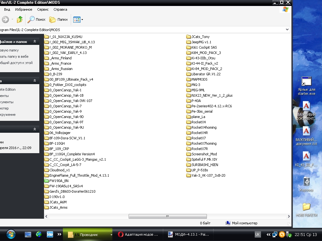Взял за основу модактиватор с Фримоддинга, собственно ИЛ2ехе и длл-ку., вытянул из САСовского Модакта 6.10 диффим., перепрошил его баттонз что бы не висел свицовой гирей - там похоже зашили двумя ntrkwizard.jar., скоректировал карту Словакия-зима для того что бы была похожа на зиму., и доставил уже кучу модов. Пока запускаеться и летает(не всё успел проверить).