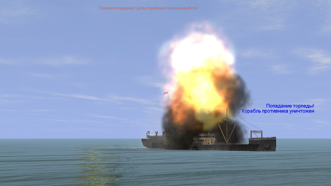 P.S. Кстати, взрыв и последующее горение собственно корабля - дефолтные. Изменён только столб воды от торпеды.