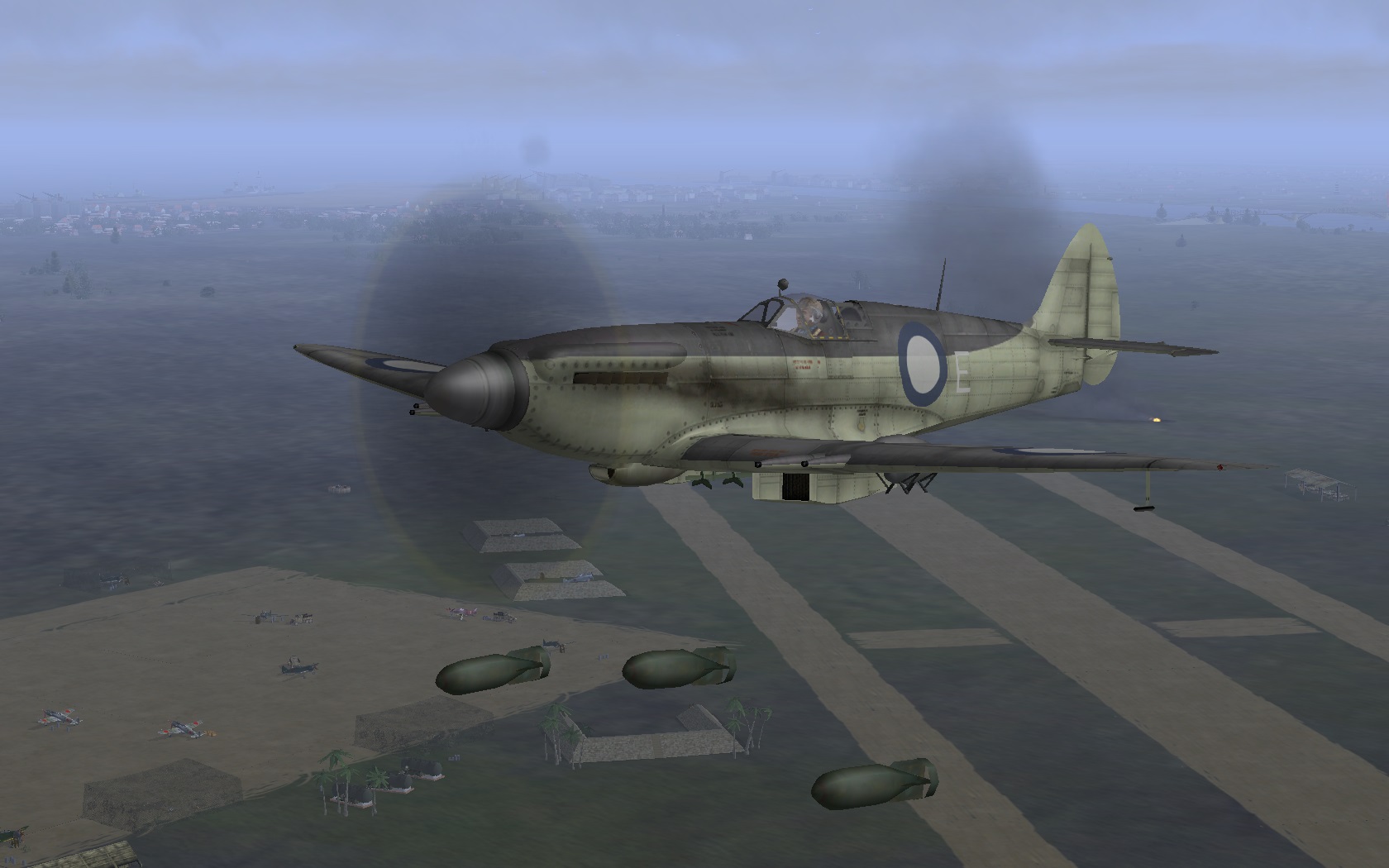 Поэтому альтернативщина будет у меня в стоке, она будет завершать все кампании за американцев, англичан, австралийцев, новозеландцев и японцев. Альтернативщина будет доступна после последнего историчного этапа основной части исторической кампании. Карта "B-29 Alley" подверглась вмешательству через разлоченный редактор, после чего на ней появилось несколько новых филдов, специально для альтернативной кампании. Я посчитал, что так будет интереснее, чем просто использовать имеющиеся базы. Для "Tiger Force" построен специальный аэродром для тяжелых бомбардировщиков, с охренительно длинной ВПП Также добавлен морпеховский аэродром на острове к северу от Окинавы, и небольшой истребительный аэродром на острове Косикидзима, к западу от Кюсю. Этот остров по плану "Даунфолл" должен быть захвачен до начала высадки на Кюсю (и у меня так будет), поэтому я решил, что на нем тоже не помешает аэродром. Туда после высадки будут переброшены истребители из КМП, и возможно еще некоторые.Сегодня допилил кампанию за Fleet Air Arm, по полной программе использованы поздние Сифайры с "Гриффонами", ну и Си Фьюри. Вот что из этого получилось, штурмовка аэродрома на Кюсю: