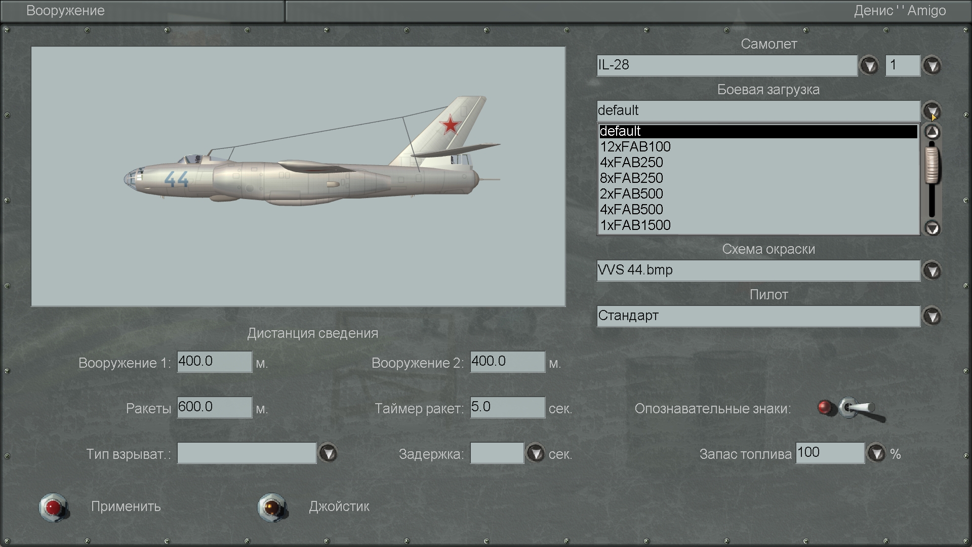 Да, я был уверен, что Ил-28 у тебя из DGen пака, Под 4.12 надо смотреть оригинальный класс самолёта и, возможно его FM. То есть нужен оригинальный мод с этим самолётом