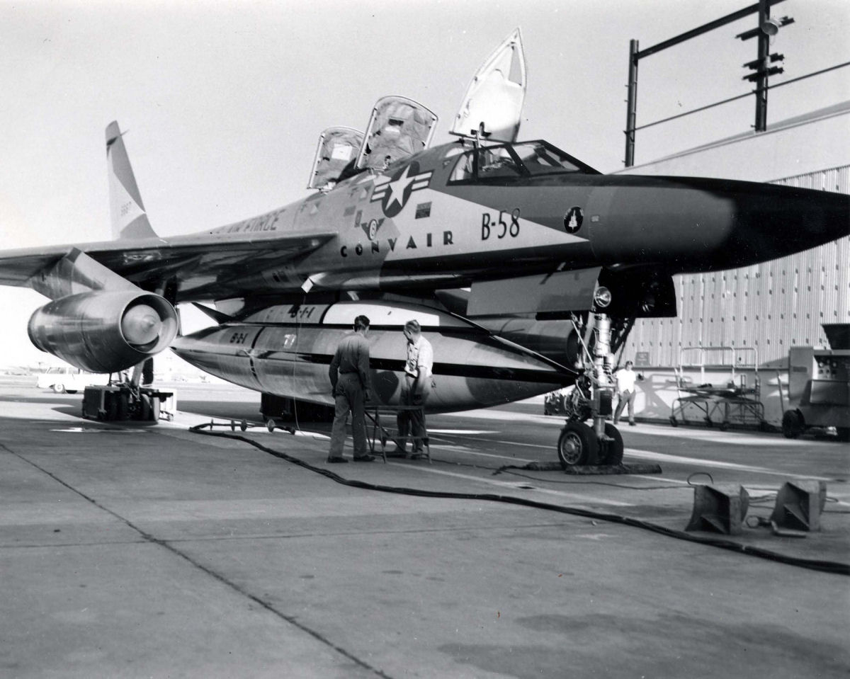 Первый серийный сверхзвуковой бомбардировщик Convair B-58A Hustler.