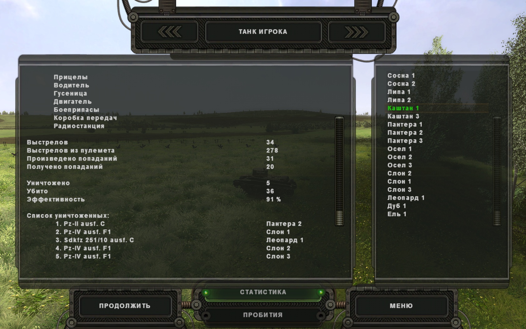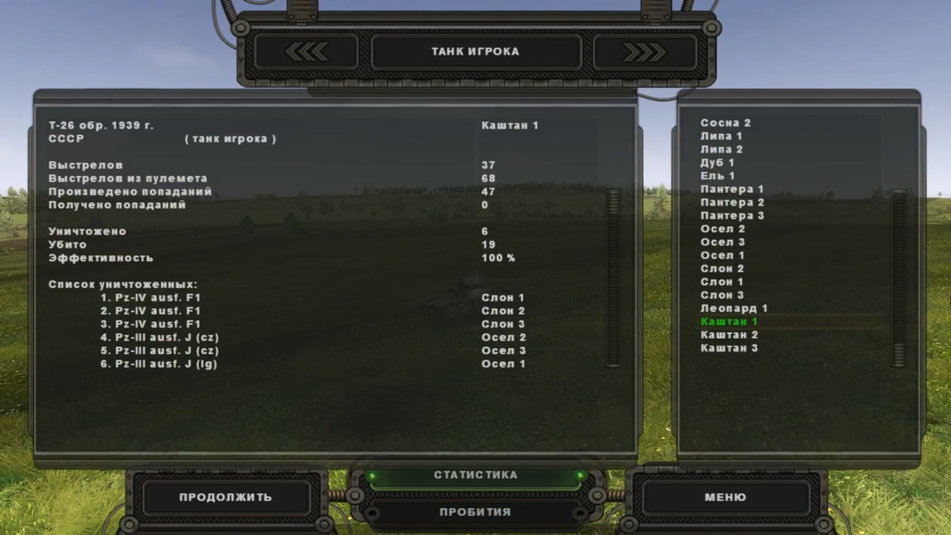 В этой миссии нас ждёт встречный танковый бой. Т-34, Т-60, Валентайн - будет жарко, очень жарко. Сначала покажу к чему приводят попытки поиграть в Рэмбо ))) , т. е. вопреки всем уставам и наставлениям вылезти вперёд своих танков с целью победить всех врагов в одиночку ![]() Сначала удача была на моей стороне: успел подбить две "тридцатьчетвёрки". Но оставшиеся две думали иначе. Нанеся кинжальный фланговый удар, они просто смели мой взвод и деловито водя стволами, попылили дальше, разбираться с оставшимися танками. ![]() ![]() ![]() ![]() Провалив таким образом несколько попыток, решил в конце концов не геройствовать и сменить тактику. Теперь в первом эшелоне шли танки, а мои "охотники" на некотором удалении за ними, готовые при возникшей опасности поддержать наступающих огнём. Как оказалось это было верное решение. Удивили лёгкие Т-60, которые в этом бою уничтожили два Т-IV и три БТРа, особенно отличился "Каштан 2", а вот "тридцатьчетвёрки" наоборот, как-то слабо выступили и записали в свой актив только один БТР. Мои победы - три Т-60 и один Т-34. Но с Т-34 можно сказать "групповая победа". Так как он уже был обездвижен и вроде бы не вёл огонь, когда я за него принялся и всадил два или три бронебойных. А вот Т-60 на сто процентов мои ![]() Напоследок - киношка "Panzerjager I в бою". Здесь одна из проваленных миссий. Сначала вроде бодренько так отбивались, уничтожили два Т-34, причём второй очень эффектно взорвался от моего попадания, в баки видимо попал. А потом... Прощёлкал появление на правом фланге Валентайна и когда я наконец его увидел, через мгновение всё было закончено. Красиво он меня вынес, я даже испугаться не успел ![]() https://youtu.be/kIchHmJUf-4 Скрины подбитых мной. Причём некоторые со своей статистикой, противник крепкий попался