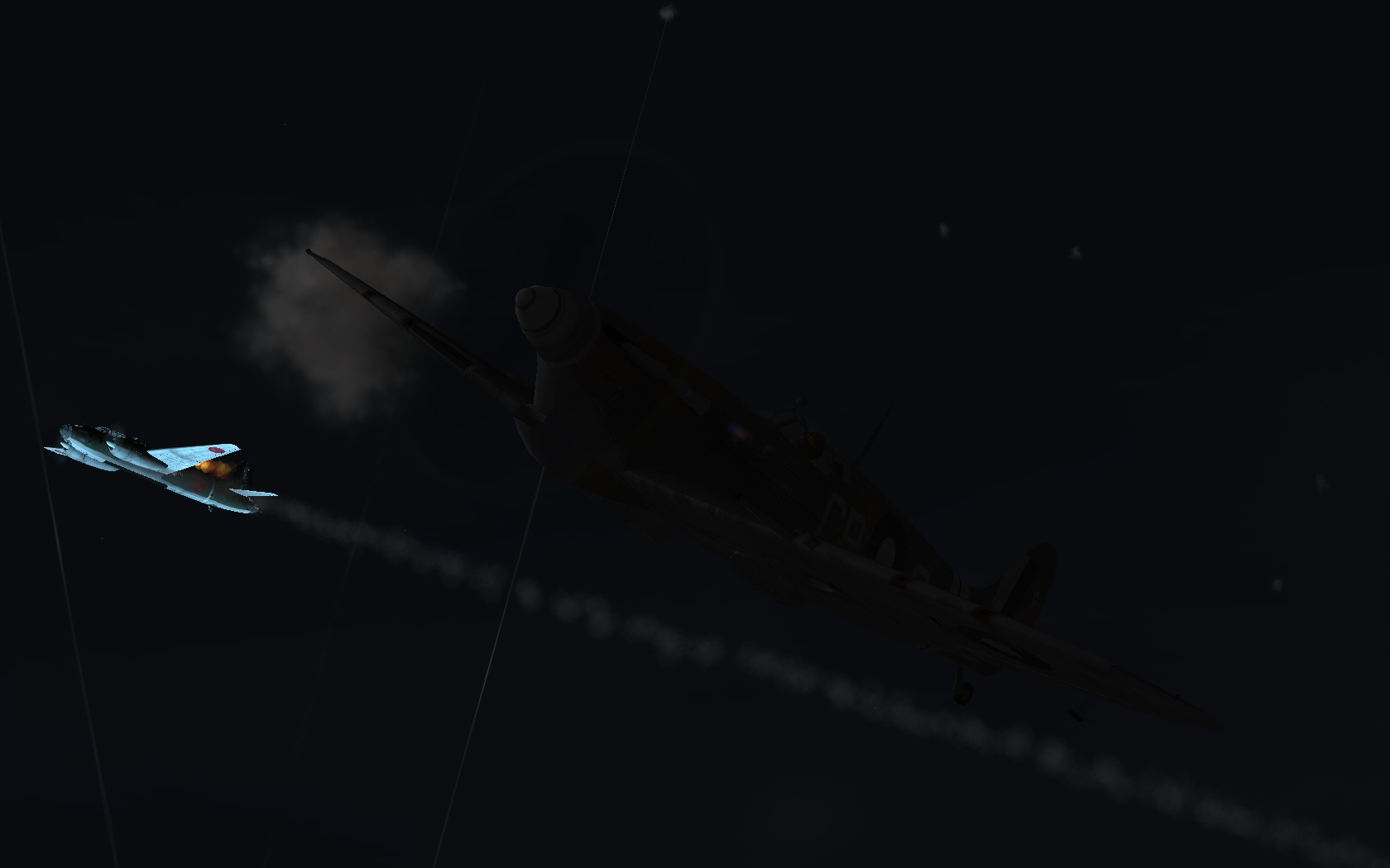 Еще один апдейт по Дарвинским Спитфайрам. Сейчас я прохожу эту кампанию, и, как всегда, никакой тест не сравнится с неспешным прохождением кампании. Судя по первым двум миссиям, получилось норм. В 1943 обычные Спитфайры-пятерки несколько раз вылетали на ночной перехват японских бомберов над Дарвином. Точно не знаю, но скорее всего они находили японцев при помощи прожекторов, зениток и наведения с земли. В кампании это тоже срабатывает: