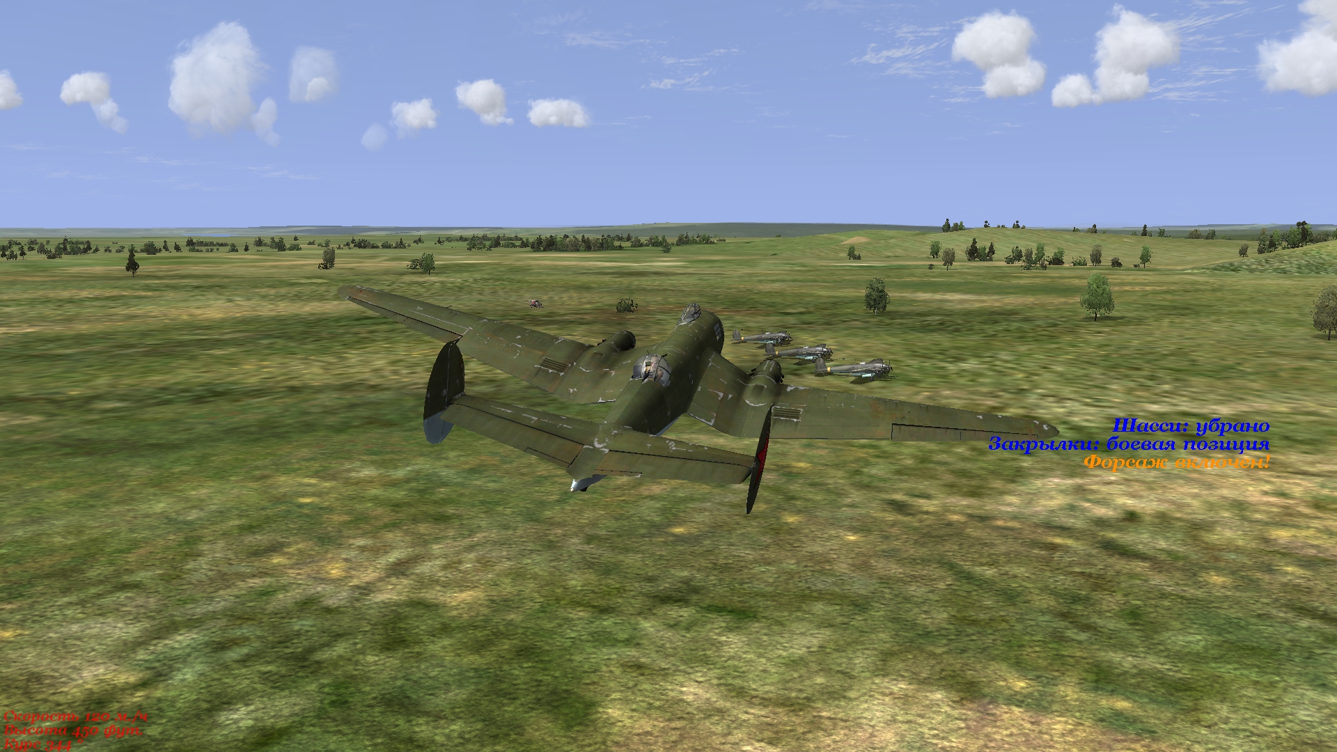 http://forum.aviaskins.com/showthrea...529#post186529 выложена "финальная" версия фм самолёта Ер-2. Есть архив зип - если вин-рар будет брыкаться при распаковке. В другом архиве зип есть фм и моторы в последнем финальном варианте. Можно для начала войны ставить фм с мотором М-105ПА, а далее с мотором М-105ПФ. Кому как будет нравиться. Изменения: скоректированы(усреднены) цыфры аэродинамического качества., снижена скороподъёмность до приемлемого/игрового варианта., триммирование высталено на шарик в центре на максималке у земли., совсем чуть-чуть добавлен дифферент на нос., ещё раз немного снижена маневренность и отклик на елероны. Ниже в поляре просталены значения для вероятных ошибок в профиле крыла реального прототипа. Эти цыфры закоменчены рысками - их Ил не читает., но для умеющих шить фм не составит труда выставить эти цыфры на пробу потестить. Аэродинамическое качество в иловских единицах поставил 1.65, хотя - "наверное" - они должны быть 1.71+. Крейсерская скорость с двигателем М-105ПФ при тяге 61 проц. (шарик в центре) и автомате горизонта будет 330(333) км. в час, что согласуется с паспортом самолёта. Самолёт неплохо виражит за щёт малой нагрузки на крыло, но тяжол в управлении в общем. Можна сделать тяжелее, но будет совсем неиграбельно. Сваливание есть, оно неожиданное, исправить резкий крен может опытный пилот, который налетал 2-3 года в виртуальном небе. Кто будет експлуатировать мою фм, то обнаружит это сваливание. Не буду писать в какой момент оно проявляется - секрет. ![]() При заходе на глиссаду акуратнее с закрылками. Тягу убрать до 45-50 проц. и шаг винта 80. При снижении на полосу шаг 70 и тяга 30-35. На высоте 15 метров выравнивайте и немного задирайте нос - самолёт садится почти сам, не козлит, если скорость погашена. Посадочная скорость при снижении 160-170 по прибору. Цитата: