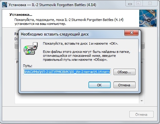 Далее пишет вставьте диск где есть файл IL2_414_MULTI (1)-1.bin. Смотрю в папку где скачал два файла. Вижу IL2_414_MULTI-1.bin. Решаю прописать так как просит винда с (1)через пробел. Ок. распаковка прошла. Запускаем Il.exe хрен в нос. |