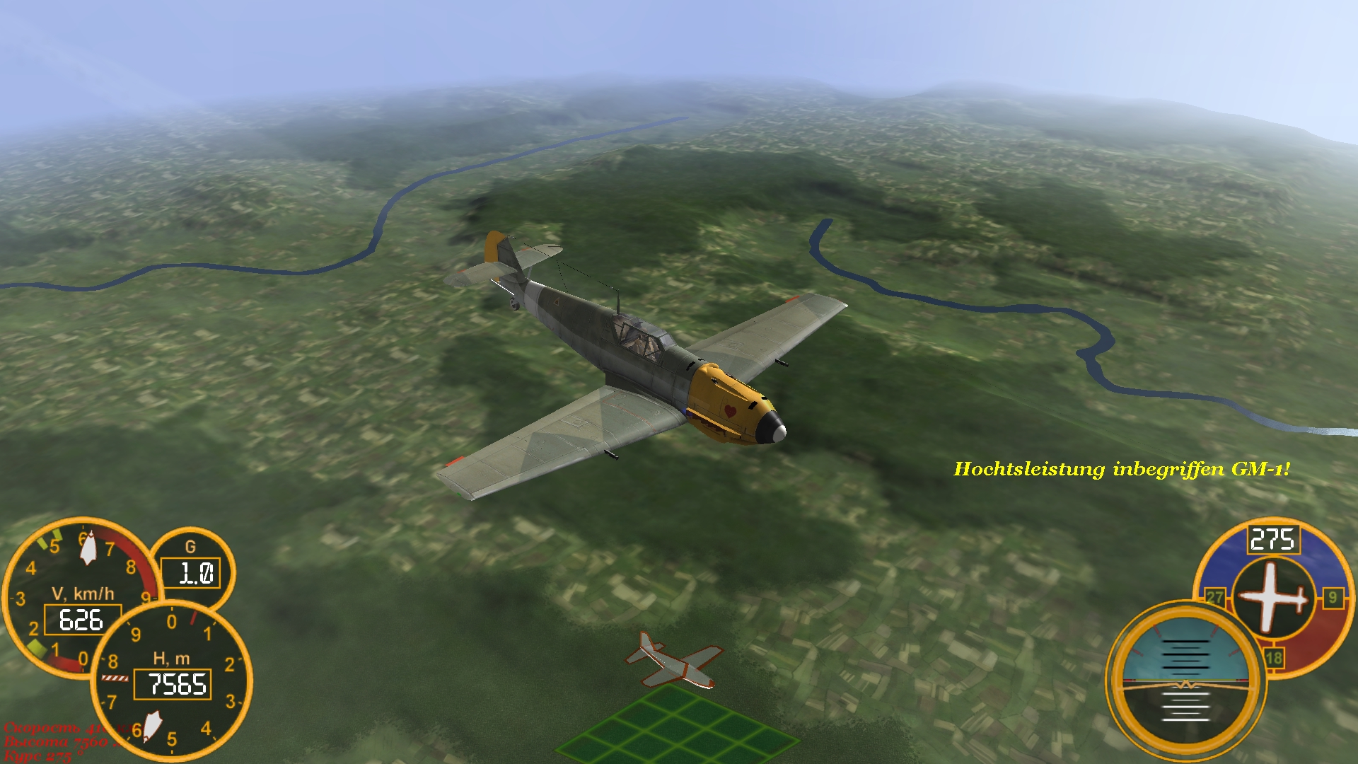 На высоте 4400 метров максимальная скорость 560 км. в час на форсаже. На номинале - 100 проц. тяги - 540 км. в час. На высоте 5000 метров на форсаже 558 км. в час. На номинале 545 км. в час. Думаю, что эти скорости согласуются с реальными. Данные нии для Емиля-3. http://www.airpages.ru/mn/bf109e3_05.shtml http://www.airpages.ru/lw/bf109e1.shtml Игровой Емиль-3 у меня будет немного медленнее единички - проставил капельку большее сопротивление на обтекатели пушек в крыле. Сначала я настраиваю "правильную" тягу мотора применительно к условиям нашего древнего сима, потом сопротивление выставляю, что бы близкое к реальному +- чуть-чуть. Высотные характеристики получаются сами собой при настроенном моторе. Исключение - радиальные двигатели на советстких самолётах. Хотя - если честно - Баффало так же не дотягивает до проспектных скоростей 30 км. в час на высоте. Возможно, что довоенные трубки пито имели серьёзные баги и не показывали в расчётах истинной скорости. А относительно отчётов испытаний новой советской авиатехники имело место быть и очковтирательство вкупе с приписками. Пример: испытания первых Яков. Такое моё мнение - никому не навязываю. Если известны цифры испытаний и даже поляра реального самолёта, как это есть для Мига-3, то и виртуальная модель выдаёт точные ттх, с погрешностью в 2-3 км. скорости. На высоте скрыться от Мига в 41 году почти никто не мог. Исключение Ю-86 в варианте разведчика с огромным потолком. |