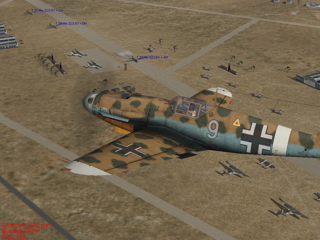 МИССИЯ 1 («Тунисские хроники 1»). 4 октября 1942 года. Аэродром «Комизо» (о. Сицилия). 10час 30 мин. Вы назначены ведущим пары, которой поставлена задача перелететь на другой приморский сицилийский аэродром «Мило» (в пригороде г. Трапани) на котором базируется эскадра специального назначения KGzbV323, на вооружении которой находятся 6-ти моторные военно-транспортные самолеты Ме-323 и тяжелые десантно-грузовые планеры Ме-321. Вы будете сопровождать и прикрывать самолеты Ме-323, перевозящие грузы, боеприпасы и личный состав войск в Тунис и обратно на остров Сицилия. Сегодня эшелон полета вашей пары 1500 м, будьте очень внимательны – возможна встреча с английскими истребителями-охотниками, базирующимися на острове Мальта. Посадку произвести на аэродром «Мило» и зарулить на стоянку истребителей. МИССИЯ 2 («Тунисские хроники 2»). 6 октября 1942 года. Аэродром «Мило» (о. Сицилия). 11 час 00 мин. Вашей паре поставлена задача сопровождать группу военно-транспортных самолетов Ме-323 по маршруту аэродром «Мило» (о. Сицилия) – аэродром «Сиди-Ахмед» (пригород г.Бизерта, Тунис). Взлет пары произвести с рулежной дорожки. После взлета сделать несколько кругов над аэродромом и дождаться взлета с ВПП всех Ме-323, после этого взять курс на Тунис – маршрут полета нанесен в полетной карте. Эшелон полета транспортников – 2000 м, ваш эшелон – 2500 м. На маршруте полета будьте очень внимательны – возможны встречи с английскими и американскими истребителями. Посадку произвести на тунисском аэродроме «Сиди Ахмед» после приземления всех самолетов Ме-323, зарулить на стоянку истребителей. МИССИЯ 3 («Тунисские хроники 3»). 11 октября 1942 года. Аэродром «Мило» (о.Сицилия). 11 час 30 мин. Вашей паре поставлена задача сопровождать группу тяжелых морских военно-транспортных самолетов BV-222 «Викинг» из отдельной морской авиаэскадрильи Transport Staffel 222 See. Встречу с «Викингами» произвести над их гидроаэродромом, расположенном на побережье, северо-западнее аэродрома «Мило», сделать несколько кругов над гидроаэродромом, дождаться взлета всех «Викингов». Эшелон полета «Викингов» 2000 м, ваш эшелон 2500 м. Сопровождение «Викингов» производите до береговой черты Туниса, дальнейшее их сопровождение до гидроаэродрома посадки будут выполнять истребители из JG-77 – встречу с ними произвести в квадрате ВН-23. После передачи сопровождения уходите на тунисский аэродром «Сиди Ахмед». На маршруте будьте очень внимательны – возможны встречи с английскими и американскими истребителями. Посадку произвести на аэродром «Сиди-Ахмед», зарулить на стоянку истребителей. МИССИЯ 4 («Тунисские хроники 4»). 1 ноября 1942 года I/JG-53 перелетела с сицилийского аэродрома «Комизо» на тунисский аэродром «Джедайда» на котором уже базировались III/JG-53 на самолетах Bf-109G-2 и II/StG-3 на самолетах Ju-87D-1. Аэродром «Джедайда» жил почти тыловой жизнью и из оборонительных средств имел только одно зенитное орудие калибра 37 мм. 5 ноября 1942 года союзники неожиданно прорвали немецкий фронт – началось наступление 1-ой Британской Армии при поддержке американских танков. Аэродром «Джедайда» не был предупрежден о танковой атаке, но командир III/JG-53 в 10 час 15 мин случайно первым увидел приближающуюся к аэродрому группу средних американских танков М-3 «Грант» – их было не менее 17 единиц, они были на удалении почти километр от аэродрома. Через посыльных он дал кома