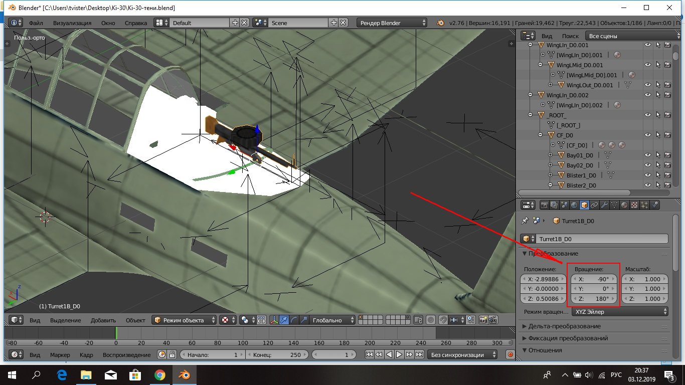 Это совершенно верно, код регулирующий углы обстрела задней огневой точки. Вот что меня интересует на примере блендера. Для того что бы пулемет кое как наводился пришлось повернуть его по Z на 180 градусов а по Х на -90. Сейчас чешу репу и вижу, что у дефолтной модели "Вел" вообще ничего не накручено.