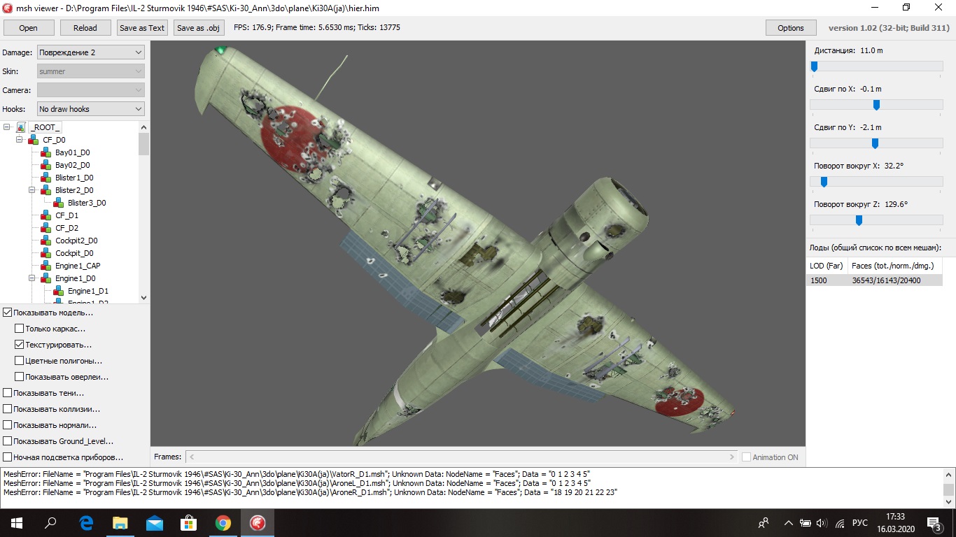 Спасибо Mixx, я понял, скины из папки PaintSchemes=>Skins=>Ki-30A, вообще повреждений не имеют. Сейчас воюю с импортом bmp. из Гимпа.