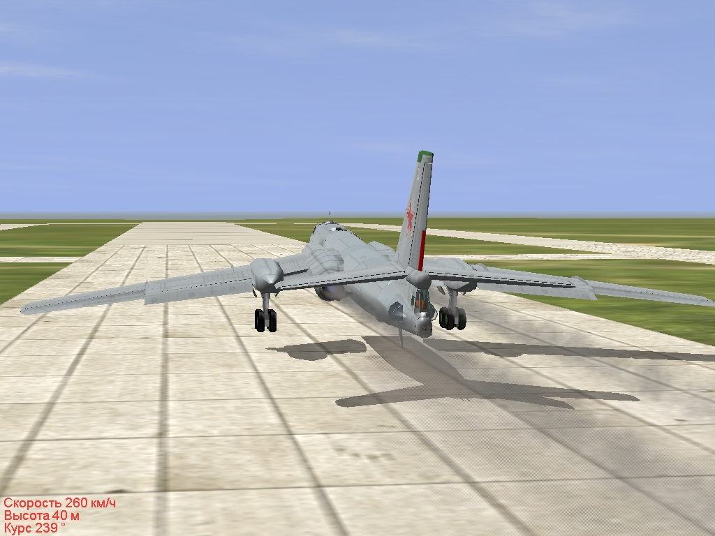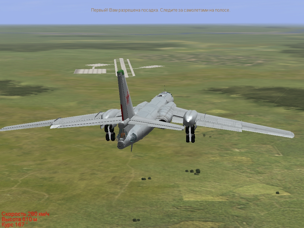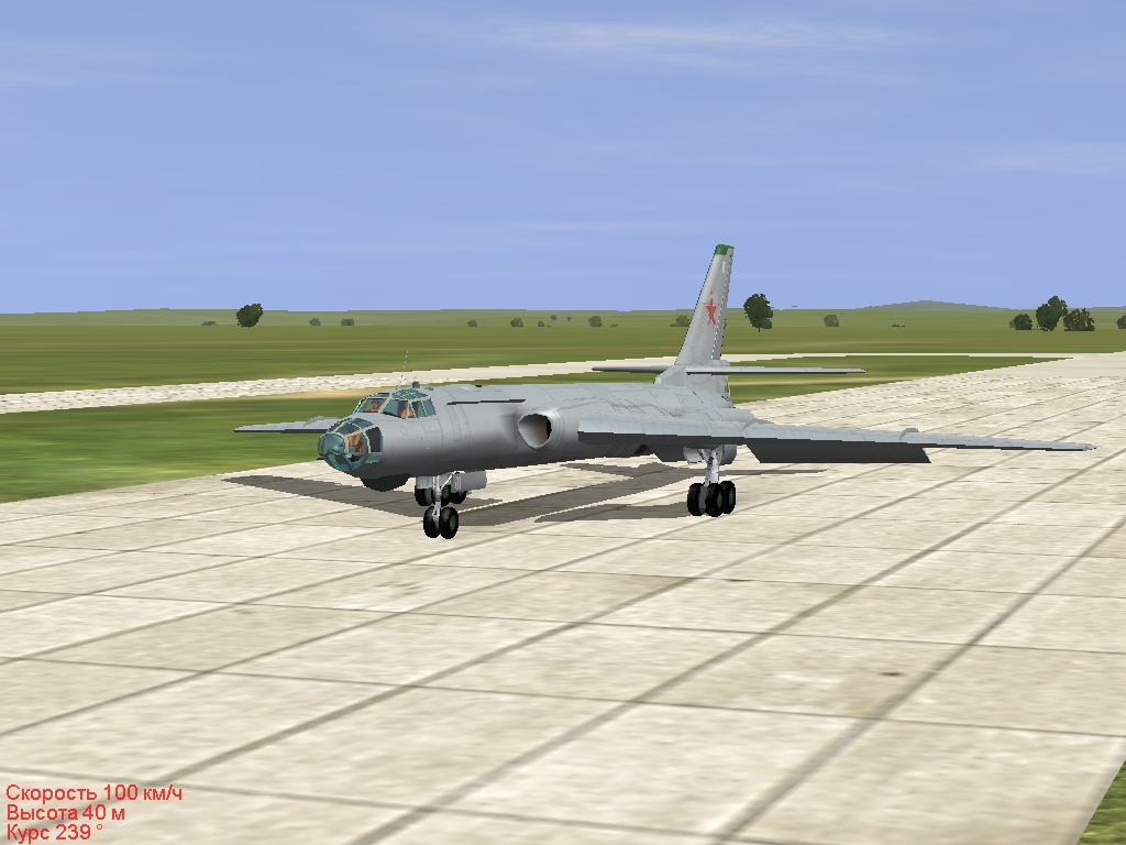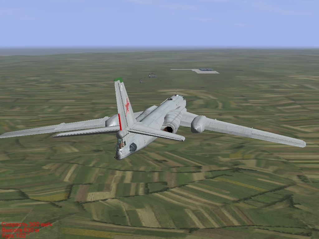 3. Взлет, полет по маршруту и посадка одиночного ТУ-16А. Простой редактор, карта Бессарабия (длинный маршрут, грунтовый аэродром), заправка топливом дефолт (т.е. 100