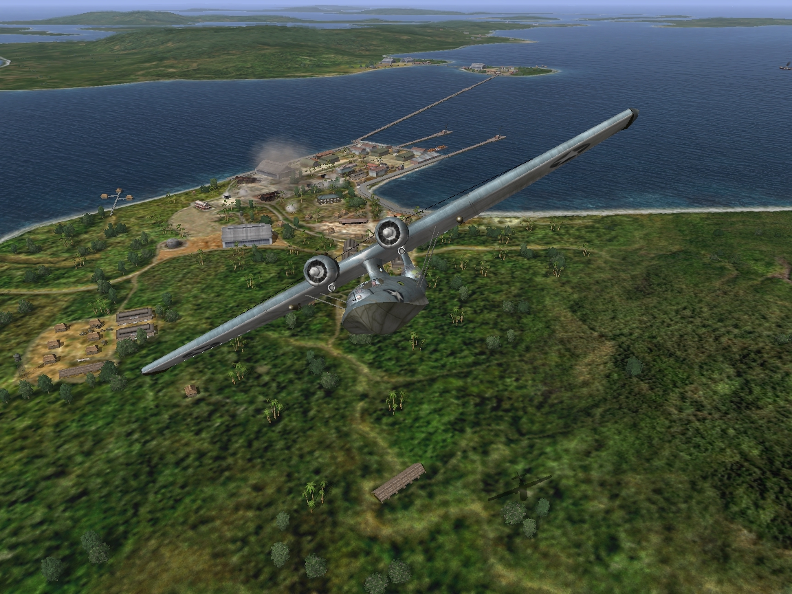 Пожалуйста, проверьте на своих версиях дефолтной карты Палау – западную взлетку- указано красной стрелкой. 2. На маленьком островке Низебус (Ngesebus) смогут взлететь/ приземлиться только 3 самолета. Самолеты с большим «пробегом» подобно В-24 или В-29 ( в авторежиме) к сожалению не сядут, но даже одиночный B-29 c двумя тоннами стартует успешно, B-24 даже тройка ( 2 и 3-й шоты). 3. На базовых японских гидрофилдах, только с одной ВПП заметил проблему на старте. Из-за поднятия высоты на побережье, Н8К с полной бомбозагрузкой цепляют джунгли. Но если убавить им топлива- взлет в авторежиме нормальный. Из-за сложного рельефа и текстуры морского залива пришлось отказаться от «спокойного» речного берега Посадка более-менее, но теперь гидросамолеты подобно китам прибивает к берегу волной. (4-5-й шот) |