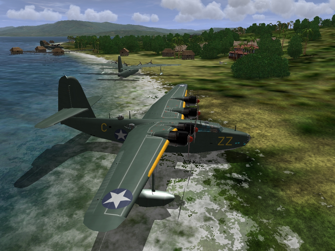 Пожалуйста, проверьте на своих версиях дефолтной карты Палау – западную взлетку- указано красной стрелкой. 2. На маленьком островке Низебус (Ngesebus) смогут взлететь/ приземлиться только 3 самолета. Самолеты с большим «пробегом» подобно В-24 или В-29 ( в авторежиме) к сожалению не сядут, но даже одиночный B-29 c двумя тоннами стартует успешно, B-24 даже тройка ( 2 и 3-й шоты). 3. На базовых японских гидрофилдах, только с одной ВПП заметил проблему на старте. Из-за поднятия высоты на побережье, Н8К с полной бомбозагрузкой цепляют джунгли. Но если убавить им топлива- взлет в авторежиме нормальный. Из-за сложного рельефа и текстуры морского залива пришлось отказаться от «спокойного» речного берега Посадка более-менее, но теперь гидросамолеты подобно китам прибивает к берегу волной. (4-5-й шот) |
