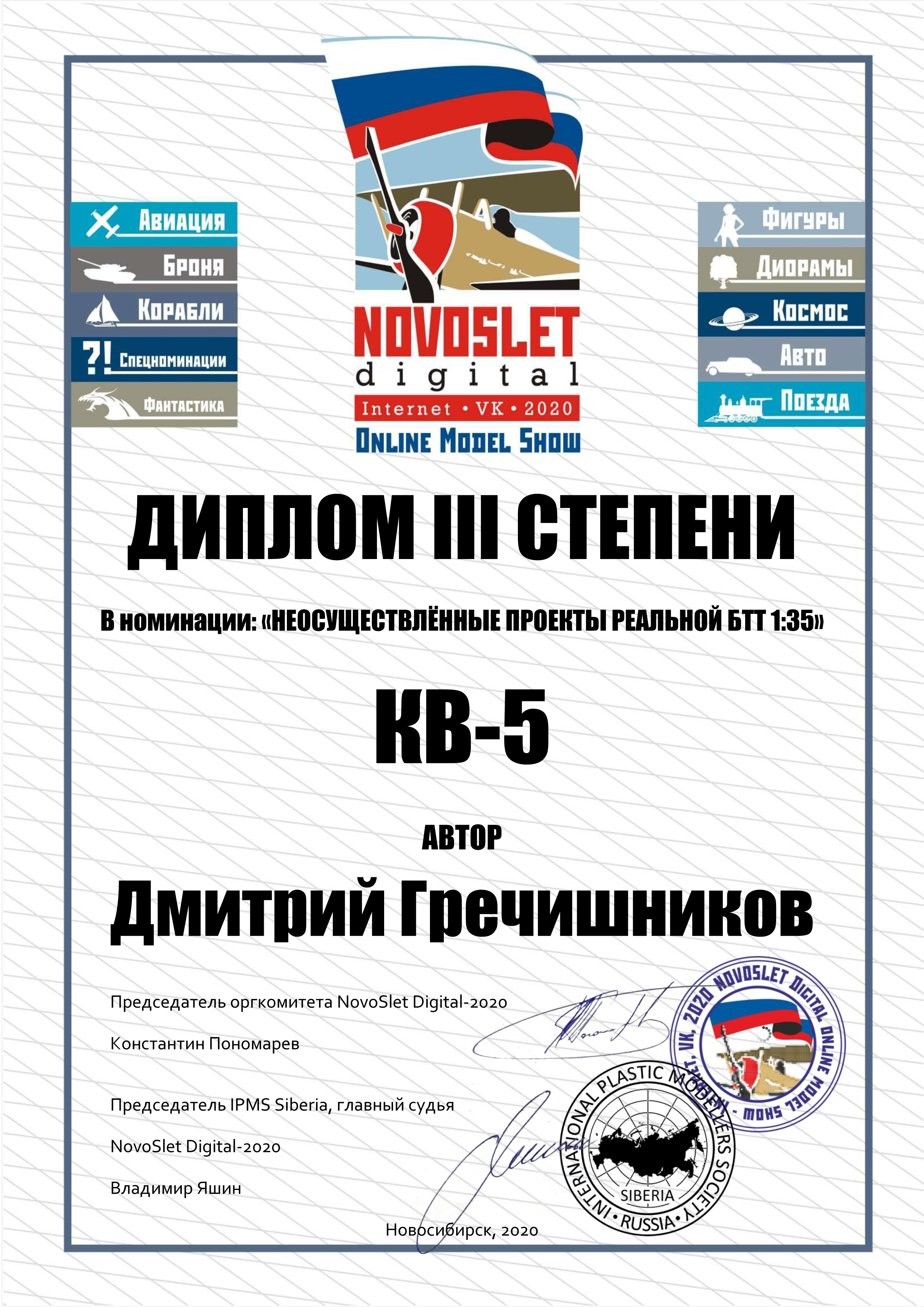 В.3506 Неосуществлённые проекты реальной БТТ Диплом I степени - САУ ЗИК-20 - Мстислав Неудачин Комментарий жюри NovoSlet Digital: "Эта работа не оставила равнодушными всех членов жюри. Неудивительно, модель смотрится очень монструозно, необычно и внушительно. Вполне вероятно, что данная модель вдохновит кого-либо из производителей из Поднебесной на выпуск промышленного набора! Жюри высоко оценило работу, однако отметило, что в плане окраски и тонировки есть направления для роста. Например, можно интереснее окрашивать и тонировать гусянки, в частности поработать с металликами. Ну и фактуру литья на маске орудия можно было реализовать немного рельефнее, что положительно сказалось бы на общем виде модели. Ну и самое главвное замечание по фото. Однотонного фона вполне достаточно и вращающийся столик в кадре явно лишний. Еще баллов работе добавила бы подставка. " Поздравляем, Мстислав! #novoslet_digital #победители_новослета #В_3506_новослет