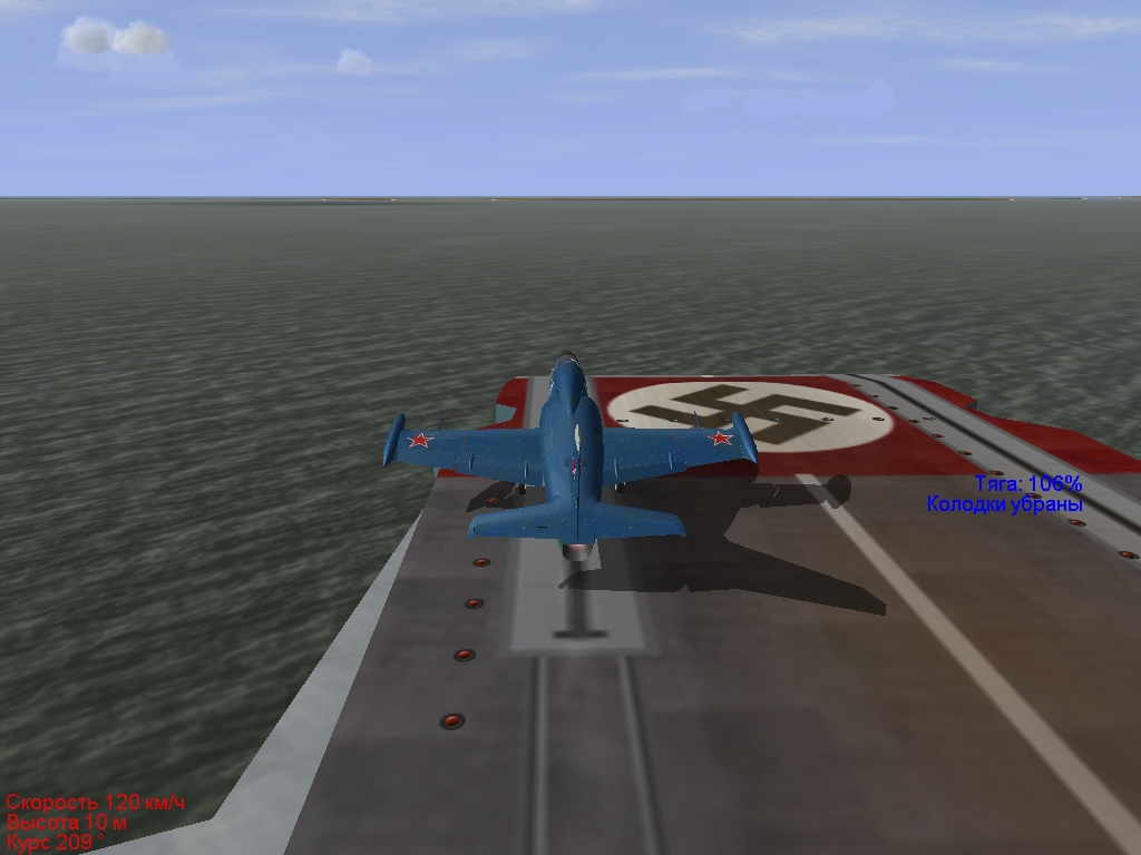 Текст брифинга. 1 сентября 1982 года. Палуба авианосца-тренажера «Граф Цеппелин». Время 10 час 00 мин. Метеоусловия ПМУ, нижний край редкой облачности 2000 м. Несколько дней назад вы успешно произвели посадку на палубу авианосца-тренажера «Граф Цеппелин». Все эти дни вы изучали особенности взлета самолета L-139N с палубы авианосца, проводили тренажи в кабине самолета, внимательно осмотрели палубу авианосца, изучили карту с маршрутом полета. Полетная палуба авианосца-тренажера «Граф Цеппелин» существенно отличается от палубы строящегося авианосца «Тбилиси» - она не имеет взлетного трамплина и имеет меньшие размеры. Но теоретические расчеты, проведенные конструкторами, показали, что легкий реактивный самолет L-139N способен взлетать с этой палубы с любым вариантом бортового вооружения, но с неполной заправкой топливом. Летчик-испытатель, пригнавший самолет L-139N, уже выполнил несколько взлетов с палубы с разными вариантами вооружения и заправки и подтвердил на практике достоверность расчетов. Вчера вы сдали зачет по производству взлета с палубы летчику-испытателю и получили разрешение на взлет от командования 100-го ОКИАП. Но в полетное задание были внесены коррективы – после взлета, в определенной точке над морем, вы должны визуально обнаружить и поразить пушечным огнем радиоуправляемую дозвуковую воздушную мишень. В качестве мишени используется старый фронтовой реактивный бомбардировщик ИЛ-28, летящий по установленному маршруту на средних высотах. После поражения воздушной цели взять курс на свой аэродром Саки, произвести посадку на него и зарулить на свою стоянку. Маршрут полета отражен в полетной карте. В зоне аэродрома Саки будьте внимательны и осторожны – идут плановые полеты. Вариант вооружения вашего самолета: Default Скин вашего самолета: L-139N_07.bmp ОЗ должны быть включены. |