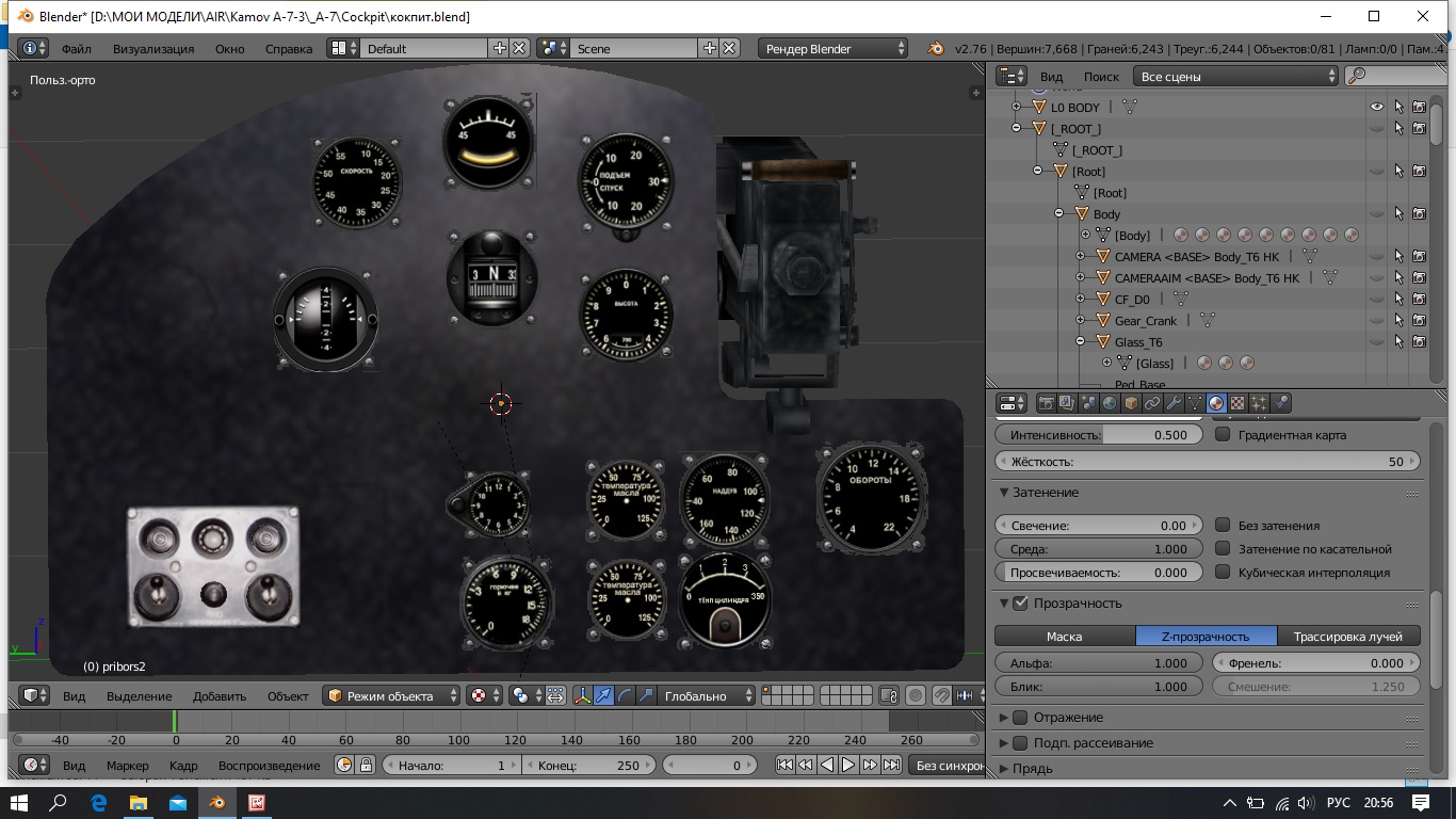 Третьи сутки мучаюсь с экспортом кокпита. В классах все прописано правильно, "родной" кокпит от R-Z стает нормально. Такой точно кокпит экспортированный из Блендера, работать не хочет, постоянные "моря-горизонты". Более вдумчиво пересмотрел-перетекстурировал исходник, опять "моря". Нашел непонятные отклонения в хиере (где ты мануал по кокпитам?!). Изучил исходники, сопоставил, просто переименовал меши. Однако все равно "море". Пока работаю с ошибками которые в изобилии выбрасывает лог-файл, всякие двойные вершины и "материальные" проблемы...