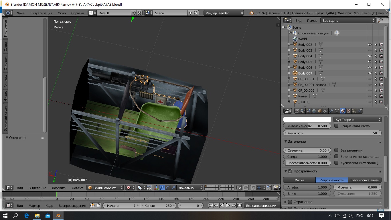 Отчет по работе с кокпитом. Пока занимаюсь "базой", неподвижными, не анимированными частями. Если по индикаторам работы мотора и полета, есть какая то информация, то по органам управления нет ничего, кроме ручки и педалей. Компоновка кабины то же не известна. Есть фото с снятыми панелями правого борта, где четко виден какой то баллон. Больше никакой информации. Придется что то фантазировать. Не смотря на то, что кабину собираю по чертежам (из МК) кабина почему то получается "тесной". Задняя часть пулемета буквально упирается в "лицо-камеру".