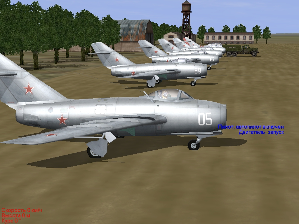 1-ое Чкаловское военное летное училище, 814-ый УАП, аэродром «Меновой Двор», 5 сентября 1957 года, время 10 час 00 мин, погода-ПМУ. Вот и подходит к завершению ваше обучение в военном летном училище. Вы успешно завершили программу обучения на поршневом учебном самолете ЯК-18У, перешли на второй курс и уже завершаете программу обучения на реактивных истребителях МИГ-15. Сначала успешно освоив учебный реактивный самолет УТИ МИГ-15 и сдав все положенные зачеты, два месяца назад вы получили допуск к самостоятельным полетам на боевом одноместном истребителе МИГ-15. Программа освоения МИГ-15 так же успешно завершается – по всем дисциплинам у вас отличные оценки и училище вы должны закончить по 1-ому разряду (впоследствии это стало называться «с отличием»), а значит, после окончания училища и получения диплома, будете иметь право выбора дальнейшего места службы. Полетное задание: Сегодня у вас одно из завершающих учебных упражнений Курса боевой подготовки истребительной авиации (КБП ИА) – полет на практический потолок. С разрешения РП запустить двигатель и вырулить на исполнительный старт. Выполнить взлет и по курсу взлета (магнитный курс 90 градусов) начать плавный набор высоты до практического потолка. Внимательно следите за скоростью полета (не допускайте ее снижения менее 280 км/час), а так же следите за отсутствием перегрева двигателя. При снижении скорости необходимо периодически выдерживать горизонтальные площадки для ее разгона. После набора высоты практического потолка развернуться в сторону аэродрома вылета, убрать РУД на режим МГ и начать снижение, следить за скоростью полета – она не должна превышать максимально допустимую. Выйти в зону аэродрома «Меновой Двор», снизиться до высоты 1000 м и сделать левый круг над аэродромом. Выполнить посадку на аэродром «Меновой Двор» и зарулить на свою стоянку. Будьте внимательны и осторожны – курсанты младших курсов выполняют плановые полеты на поршневых ЯК-18. Скин вашего самолета – стандарт. Вариант вооружения – стандарт. Мне удалось набрать практический потолок на виртуальном МИГ-15 – 14000 метров. У реального МИГ-15 (с двигателем РД-45Ф) он составляет 15200 м. У реального МИГ-15БИС (с двигателем ВК-1) он составляет 15500 м. |