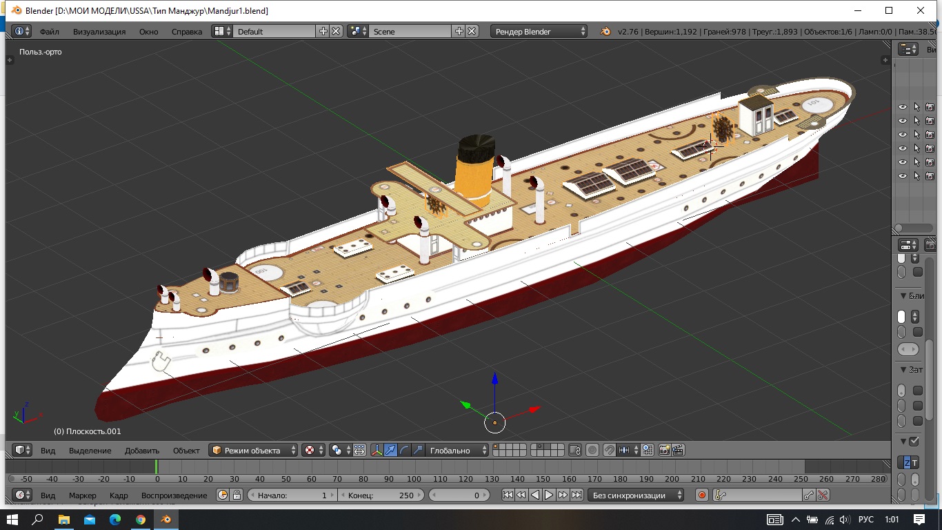 Текстурирование. Палуба ради удобства работы опущена ниже чем на чертеже. Поправлю позже.
