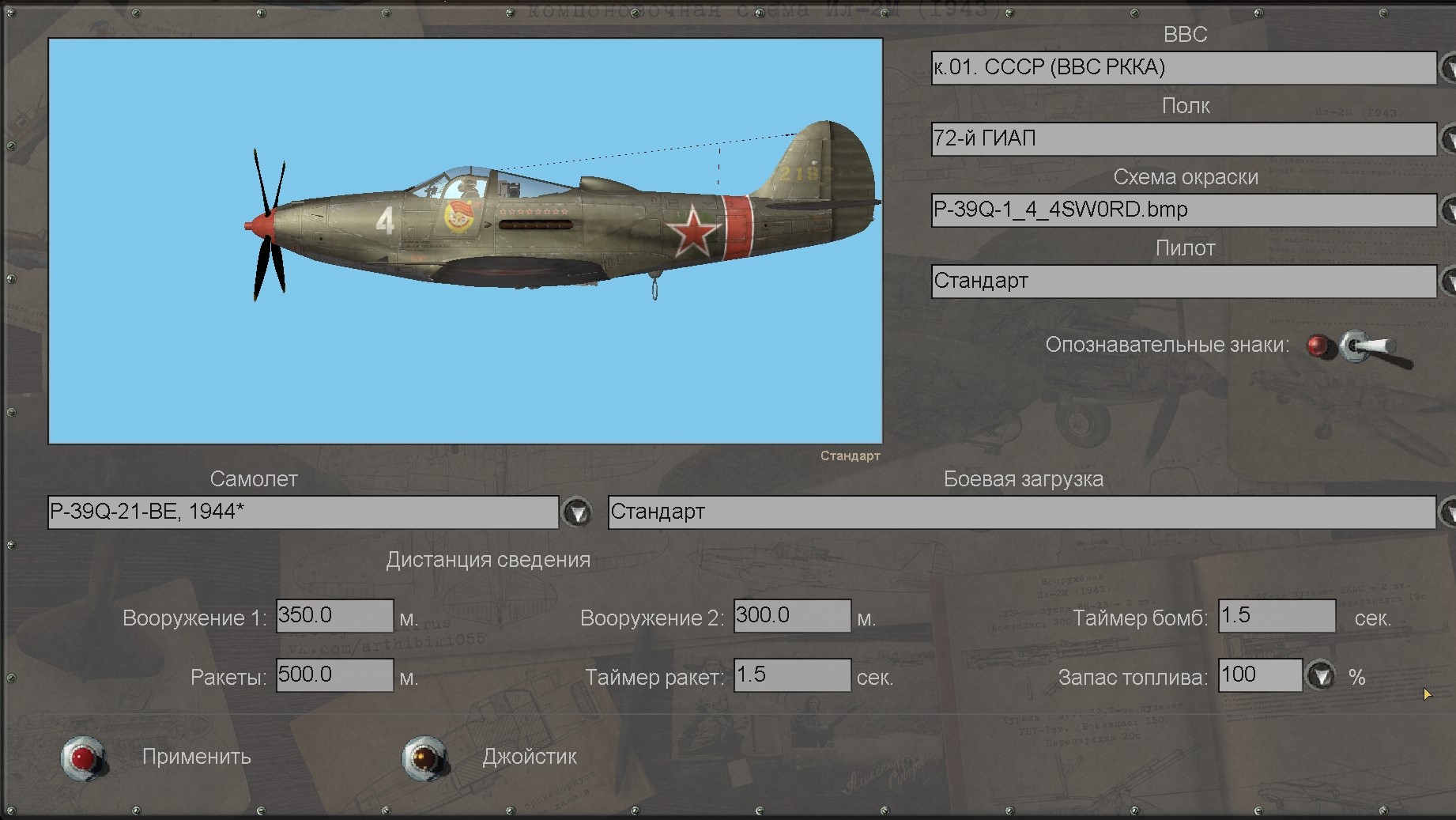 Выполнил облегчённое редактирование кампании. Редактирование выполнялось на сборке IL-2_4.14.1+DGenPACK 3.0. Исправил незначительные помарки в брифингах, неправильное написание названий некоторых населённых пунктов. Поставил для стационарных самолётов ОЗ, поскольку они исчезли при переходе ещё на версию 4.12m. Указал даты миссий в файлах .mis, поскольку, как я понимаю, такой опции ещё не было в игре в период создания кампании. Для стационарных самолётов P-40Е «Киттихаук» пришлось в файлах .mis поменять обозначение P_40EM105 на P_40EM105_NEW. Если в Вашей версии игры самолёт Р-40Е в файле stationary.ini записан как-то по-другому, то нужно в файле.mis записать его так, как он записан в файле stationary.ini. Если этого не сделать, стационарные самолёты P-40Е «Киттихаук» в миссиях отображаться не будут. То же самое относится к летабам, поскольку «Киттихауки» также принимают участие в боевых вылетах. Поскольку в версии IL-2_4.14.1+DGenPACK 3.0 не отображаются ОЗ для «Аэрокобр» мне пришлось отказаться от оригинальных скинов и заменить их, на мой взгляд, не менее хорошими. Как я уже писал ранее, в сборке IL-2_4.14.1+DGenPACK 3.0 перестали отображаться стандартные опознавательные знаки «Аэрокобр» в отличие от сборки IL-2_4.14.1. Теперь стало возможно в файлах .mis. использовать не безликое обозначение r01хх (Воинская часть ВВС РККА), а, как и положено, 19-й ГвИАП, потому что уродливая нашлёпка гвардейского значка тоже перестала отображаться на скинах самолётов, и на страничке представления полка игрока стало возможно отображение названия 19-го ГвИАП ( см. миниатюры 1,2). После распаковки архива папка Murmansk_Bellochka помещается в папку RU в игре, в меню «Карьера» в списке кампаний за СССР (ВВС РККА) появится кампания Мурманские «Беллочки». |