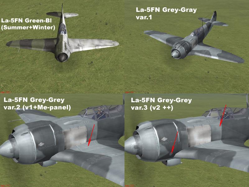 Второй архив - 3 варианта серого, отличающиеся по расшивке. 1. Расшивка как в зеленке. Если кормить ДГену, то это конец 43г. - начало 44г. 2. Добавлены Ме-панели на корни крыла. Это соотв. позЖая серия. 3. К "2" добавлена другая форма жаропрочной плиты. Если ДГену, то можно в конец 44г. и соотв. в 45г. С уважением. |