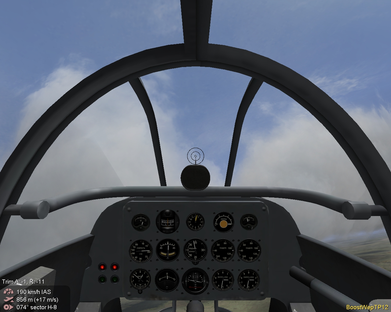 https://www.sas1946.com/main/index.p...74641.html#new В патче 4.12 наддув тип 12 плохо работает, не повышается наддув, поэтому вписал тип 11, который как бы неправильный. Сам прибор наддува нужно перерысовывать с нуля. На номинале показывает 880 мм., остальное показывает сильно приблизительно. Шкала считает от минус 400 мм., которые как бы ноль, потом опять ноль, и уже отсчёт до 1600 мм. Короче - фигня, которую нужно было стругануть рубанком. Конечно, скорость я натянул до проспектных 463 км. в час у земли - радиатор 4(по потоку). Хотя в реале с тем дохлым мотором - думаю - выше 440 км. в час не подымалась. Самолёт опытный и каждый экземпляр имел свои особенности. ----------------- Нос тяжеловат, при перетягивании ручки валится в сторону виража. Долго разгоняется и вялый в наборе высоты. Приятных полётов! ------------------------ Фикс тут: http://forum.aviaskins.com/showpost....postcount=9578 Последний раз редактировалось Vasya; 18.07.2023 в 00:16. |