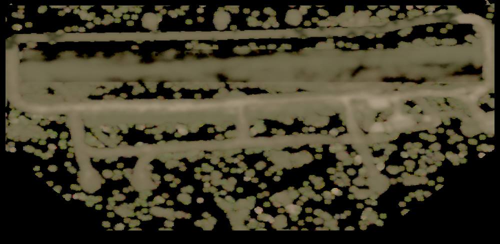 На снимке он висит перед деревьями, полоса песочного цвета. И здесь он тоже как обьект лежит, текстура земли на воде обычно не проявлется.