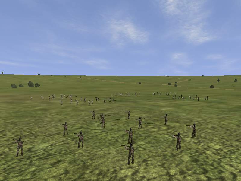 Специально для Big-B: удалось создать группу пехов взяв штатную модель на 210 поликов из роновского пехотного пака. Т.к лимит 2900 поликов - удалось сделать 13 челов в группе (отделение) если удастся урезать полики то будет больше. Т.к вооружать каждого танковой пушкой (т.к это вместо R35) нельзя - оружие не прописано. А вот если каждому выдать по винтовке/автомату/ПТР/РПГ - это будет классно.