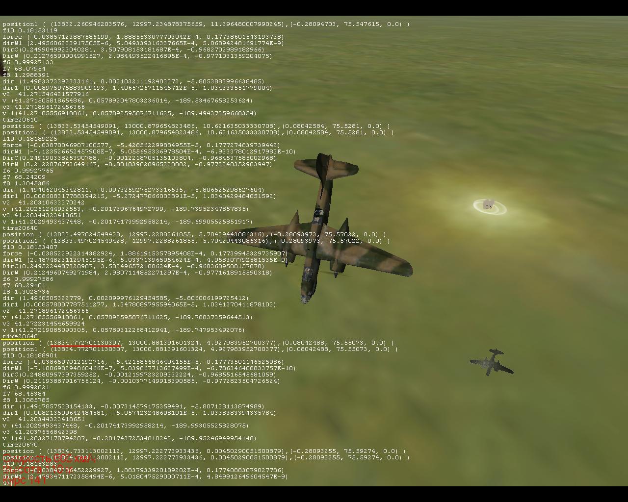 1) ввести в расчет скорость ветра...или выделить ее...короче ненаю как сказать, но чтобы ветер шел нормальной приплюсовкой вектора (а то я до сих пор не нашел места етого, а бомбы ориентируються не по потоку а по вектору скорости и т.п.) ето нужно для введения отставания ![]() 2) сделать отставание хотябы заметным, т.е. чтобы не было как щас- кидаешь бомбу с 5км на скорости 120м\с она падает с отставание порядка 50-100м, а нужно 1500( грю условные цифры)