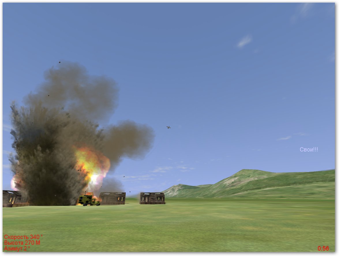 Спасибо Женя,вот опять поправил сборку эффектов,ссылка на скачивание на страничке 11,пост 203,скриншоты выше постом,переделал попадания,видны все от мелких калибров,горение наземки самолей,дымы,только у колонн,дома стат самоли не дымят,ботам мозг подправил,летать стало интересней с ними,ну и по мелочам,да чуть не забыл-прикрутил от петрушки злого мод сброса бомб,если в конф ини вставить эту строчку