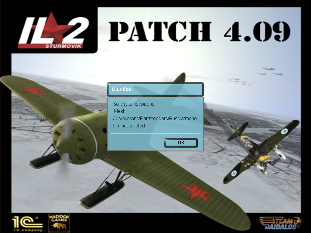 Выпадающая ошибка "3DO" -- влияние модов. Проверь на чистом Иле. Прим.: Ошибка исчезает с перезапуском. _________ [il2] title=Il2-Sturmovik Forgotten Battles hotkeys=HotKey game [window] width=800 height=600 ColourBits=32 DepthBits=24 StencilBits=8 ChangeScreenRes=0 FullScreen=0 DrawIfNotFocused=0 EnableResize=0 EnableClose=0 SaveAspect=1 Use3Renders=0 [GLPROVIDER] GL=Opengl32.dll [GLPROVIDERS] Open GL=Opengl32.dll DirectX=dx8wrap.dll [Render_OpenGL] TexQual=3 TexMipFilter=3 TexCompress=0 TexFlags.UseDither=1 TexFlags.UseAlpha=0 TexFlags.UseIndex=0 TexFlags.PolygonStipple=0 TexFlags.UseClampedSprites=0 TexFlags.DrawLandByTriangles=0 TexFlags.UseVertexArrays=1 TexFlags.DisableAPIExtensions=0 TexFlags.ARBMultitextureExt=1 TexFlags.TexEnvCombineExt=1 TexFlags.SecondaryColorExt=1 TexFlags.VertexArrayExt=1 TexFlags.ClipHintExt=0 TexFlags.UsePaletteExt=0 TexFlags.TexAnisotropicExt=1 TexFlags.TexCompressARBExt=1 TexFlags.TexEnvCombine4NV=1 TexFlags.TexEnvCombineDot3=1 TexFlags.DepthClampNV=1 TexFlags.SeparateSpecular=1 TexFlags.TextureShaderNV=1 HardwareShaders=1 Shadows=2 Specular=2 SpecularLight=2 DiffuseLight=2 DynamicalLights=1 MeshDetail=2 VisibilityDistance=3 Sky=2 Forest=3 LandShading=3 LandDetails=2 LandGeom=3 TexLarge=1 TexLandQual=3 TexLandLarge=1 VideoSetupId=17 Water=1 Effects=1 ForceShaders1x=0 PolygonOffsetFactor=-0.15 PolygonOffsetUnits=-3.0 _____________________ * Дополнение к твоему первому сообщению. На тех снимках ситуация исправляется из самого Ила: переходом в идеальный режим и возвратом в превосходный. Но делать так придётся с каждым новым запуском, по тому, что "conf.ini" несёт в себе те изменённые установки, которые не переписываются Илом). В предоставленной выписке, разделе [OpenGL], ошибка отсутствует.